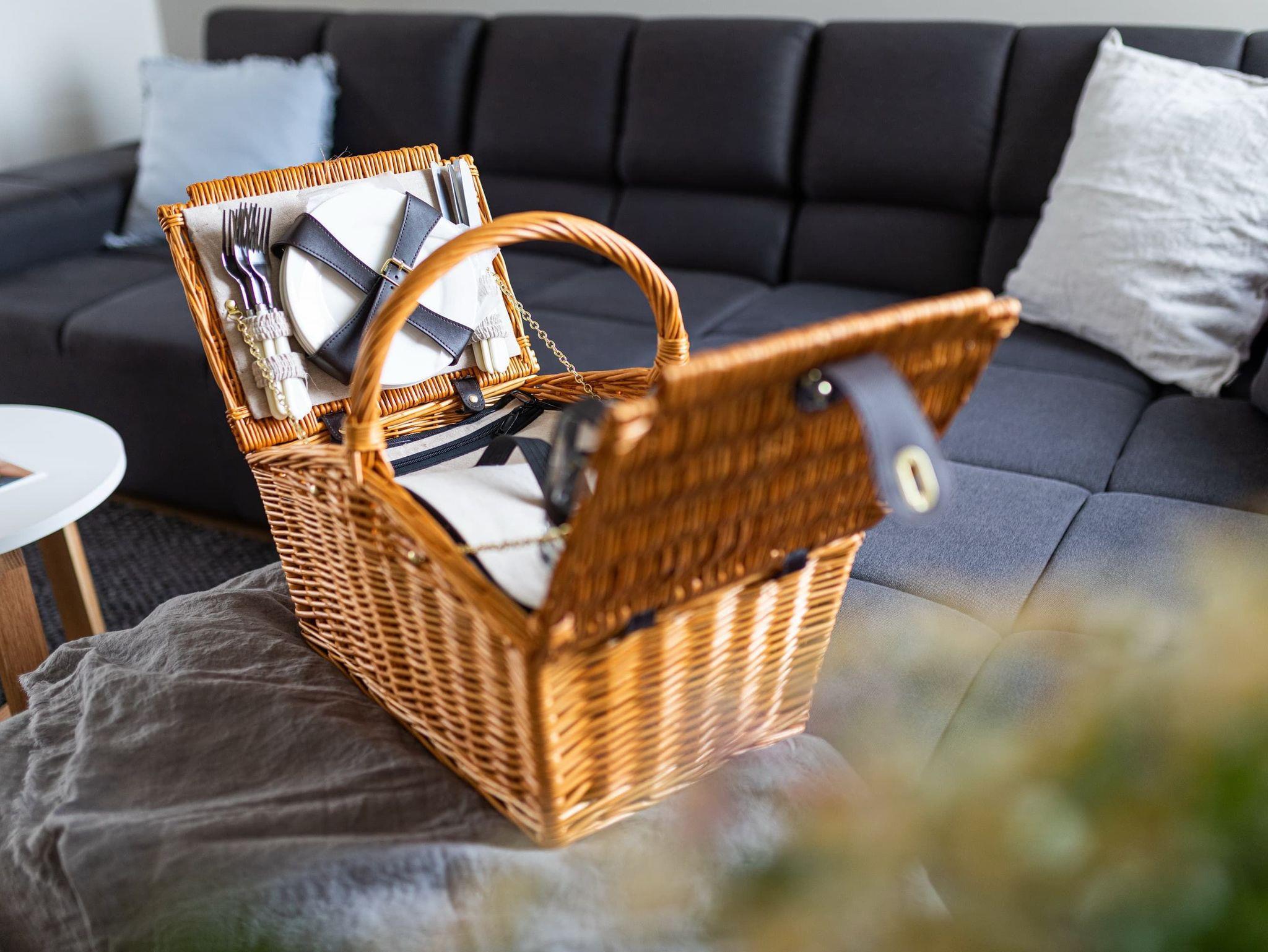 Mit Ihrem Picknickkorb können Sie es sich nach einem Bad in der Nordsee in den kuscheligen Bademänteln dort bequem machen. In der Nebensaison bekommen Sie einen Gutschein für unser wunderschönes Badehaus.