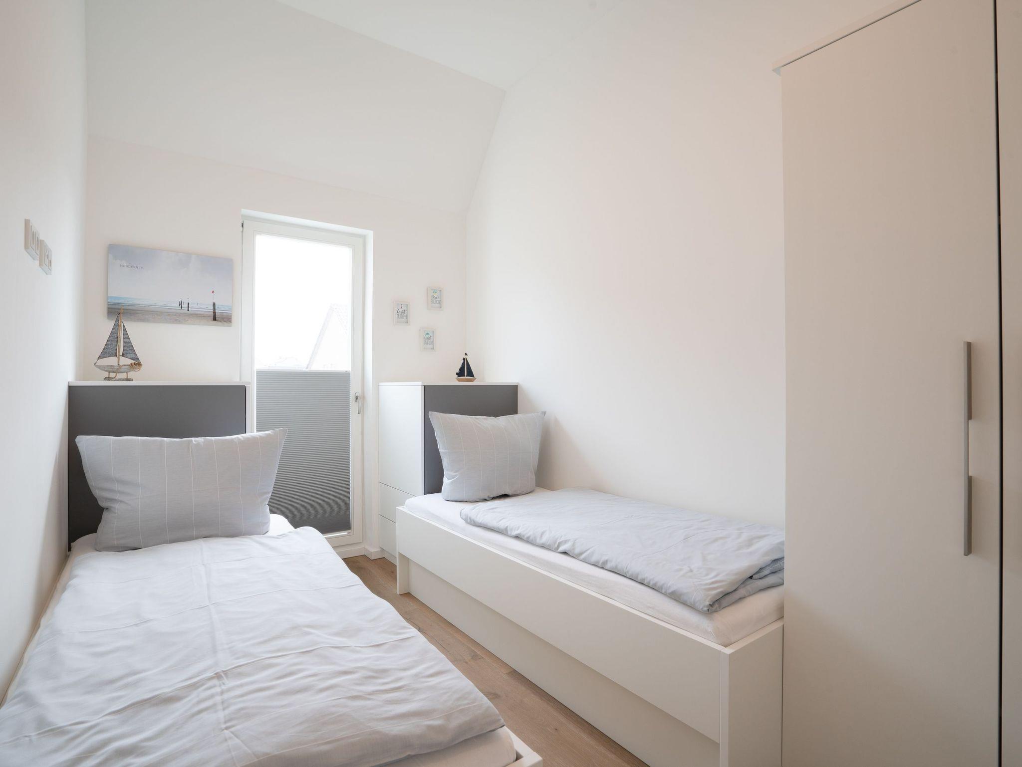 Das weitere Schlafzimmer verfügt über zwei Einzelbetten. Die beiden Schlafräume sind mit TV Geräten der neuesten Technik ausgestattet.