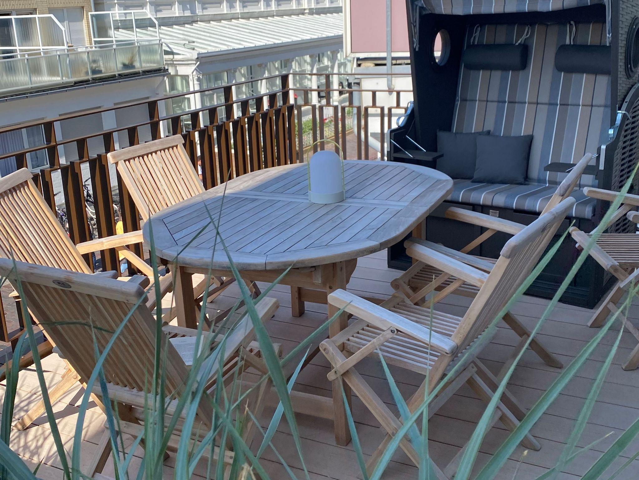 Auf der Terrasse kann man von morgens bis in den frühen Abend die Sonne genießen.