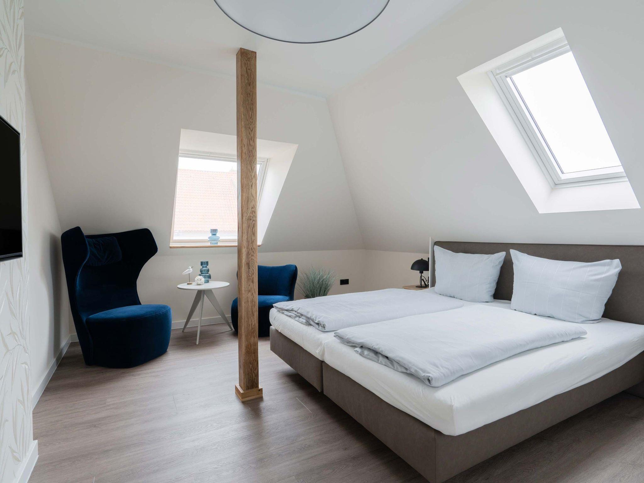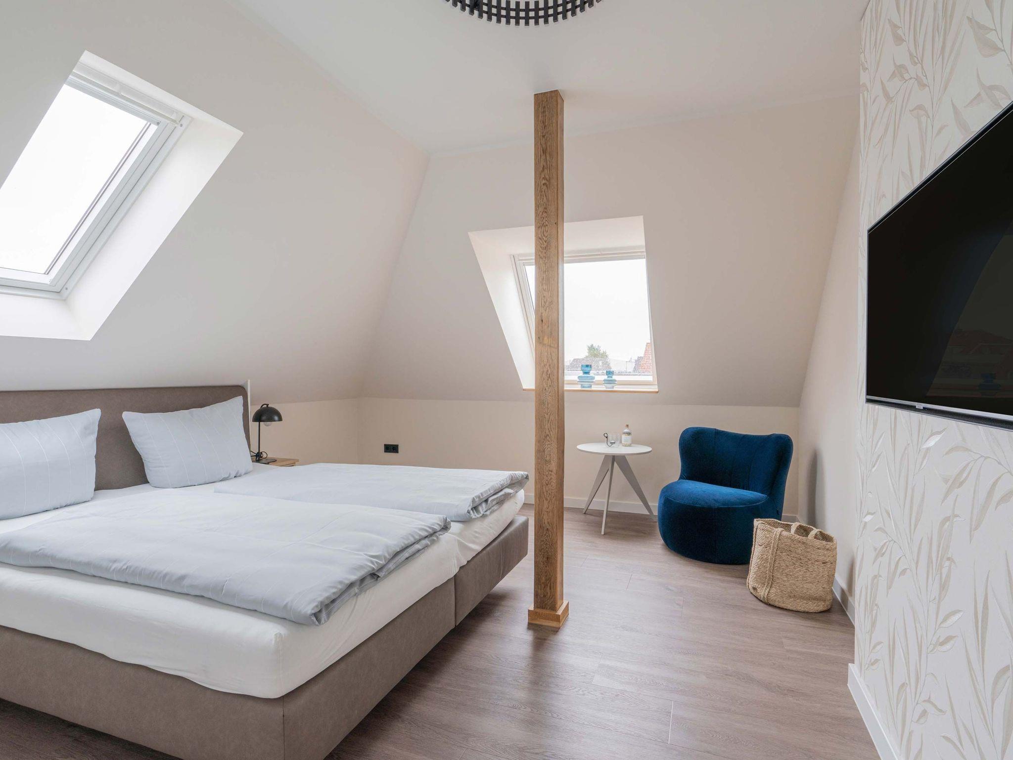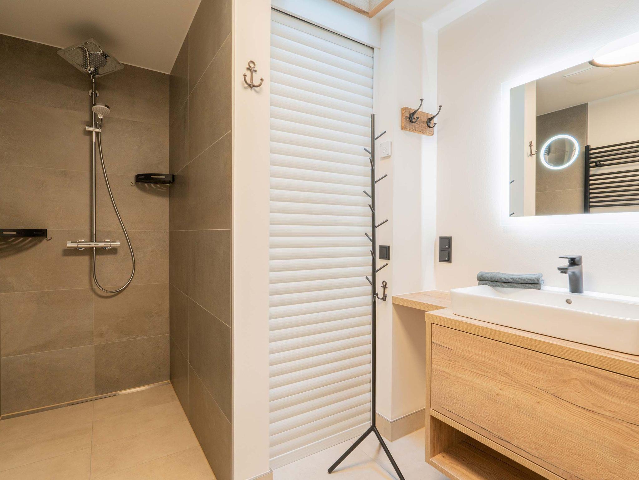 Die 70qm große Ferienwohnung Neywatt 1“ wurde 2022 komplett neugestaltet. Sie liegt ruhig und grün im Fischerhafen, nahe der Surferbucht. Vom Balkon aus haben Sie einen schönen Blick ins Grüne und auf das Wattenmeer. Im Wohnbereich besticht die Wohnung mit ihrer Großzügigkeit und einer sehr geräumigen Wohnküche. An der gut ausgestatteten Kochinsel können köstliche Mahlzeiten zubereitet werden und dort direkt gemeinsam genossen werden. Entspannung danach bietet die liebevoll gestaltete, gemütliche Sofaecke. Die zwei großzügigen Schlafräume sind jeweils mit einem Doppelbett (180cm) und TV ausgestattet. Einen zusätzlichen Schlafplatz für eine weitere Person gibt es im Giebel des Wohnraums. Das Duschbad bietet neben der Regendusche eine eigene Waschmaschine (kostenpflichtig) und einen Trockner (kostenpflichtig). Vor dem Haus steht Ihnen ein PKW-Stellplatz zur Verfügung.