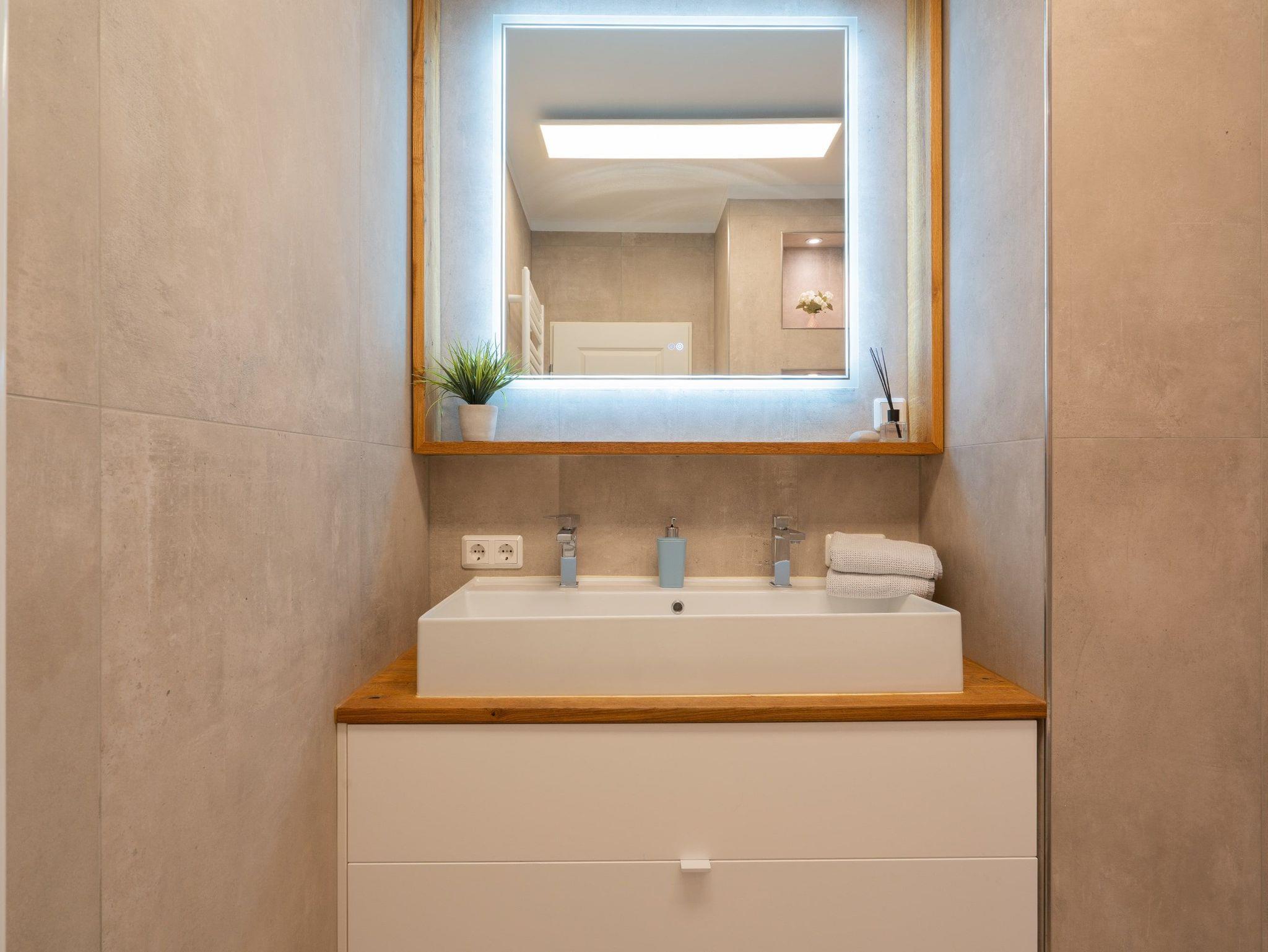 Die Wohnung wurde vollständig saniert und steht Ihnen nun in moderner und gehobener Ausstattung zur Verfügung! Die liebevoll eingerichtete 45-m²-Wohnung besitzt zwei Zimmer und ein Bad. Alles ist darauf ausgerichtet Ihnen eine unvergesslich schöne Zeit auf Norderney zu bereiten! Das moderne Bad verfügt über eine flache Duschtasse, einen Rainshower-Brausekopf und einen Doppelwaschtisch mit geräumigem Unterschrank. Im kleinen aber feinen Schlafzimmer empfängt Sie ? neben einem geräumigen Einbauschrank - ein 1,60 m breites Boxspringbett, das in eine gemütlichen Koje eingebaut wurde und zum gemeinsamen Träumen einlädt. Die vollausgestattete Einbauküche bietet alle Voraussetzungen, um Ihren Gaumen zu verwöhnen und Ihnen lästige Arbeit abzunehmen. Der rustikale Esstisch besitzt 4 komfortable Design-Sessel, auf denen es sich herrlich essen und klönen lässt. In einer gemütlichen Nische wartet schon das bequeme Sofa, von dem aus Sie Fernsehen schauen oder Ihre DVDs und Musik genießen können.
