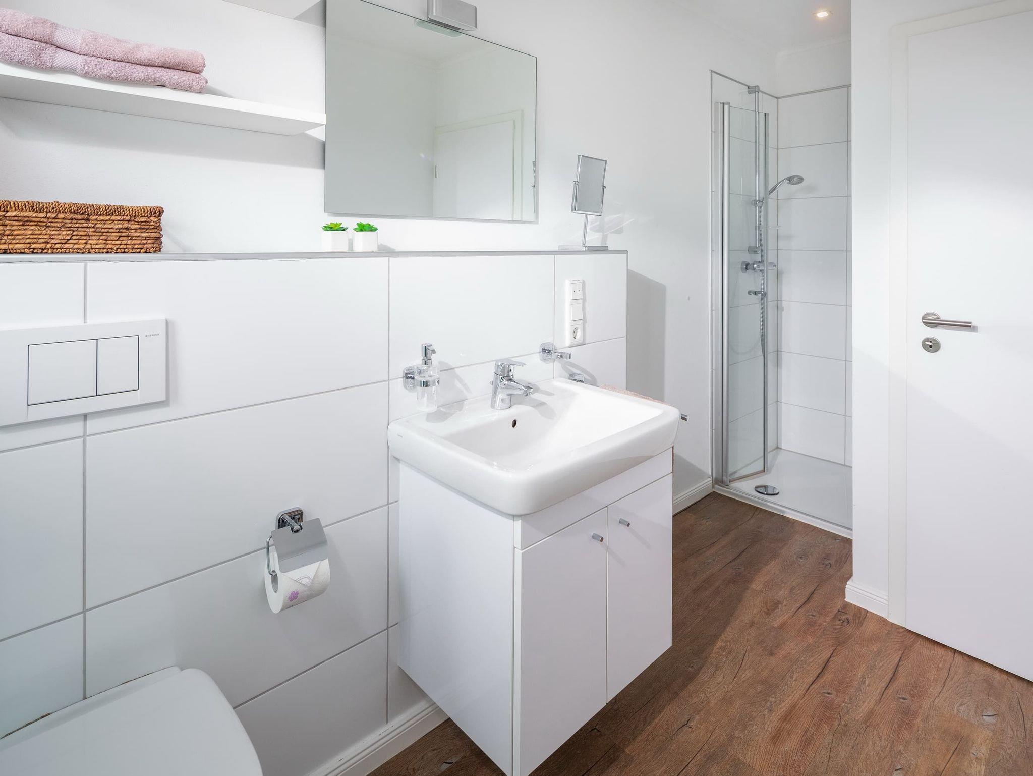 Sie verfügt über ca 45qm Wohnfläche und liegt im zweiten Stock. Sie bietet neben einem geräumigen Schlafzimmer mit Doppelbett einen modern und gemütlich gestalteten Wohnbereich mit Esstisch und angrenzender Küche. Im Wohnzimmer befindet sich eine hochwertige Schlafcouch die mit wenigen Handgriffen zu einem vollwertigen Bett mit Matratze und Lattenrost ausgezogen werden kann.