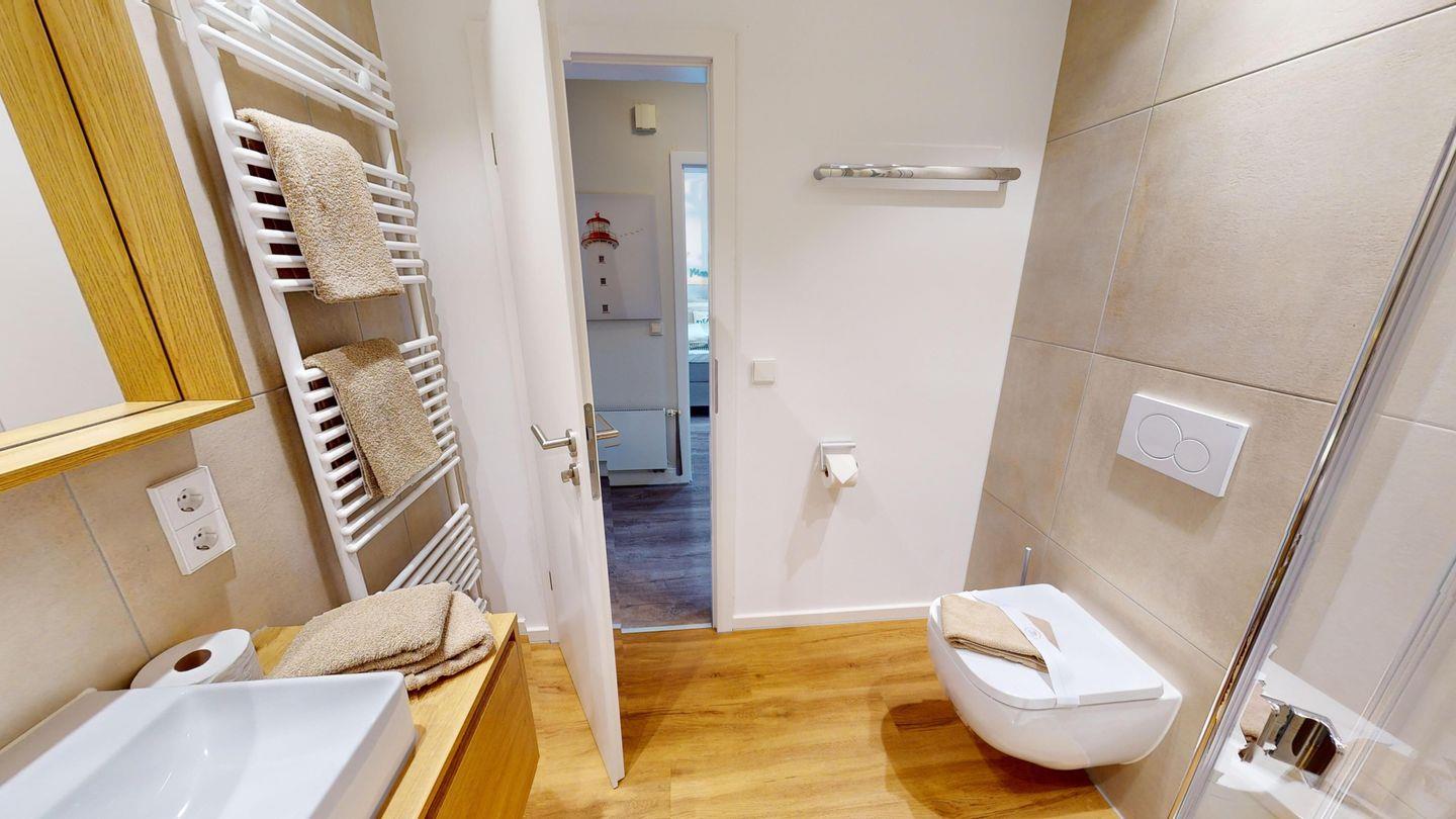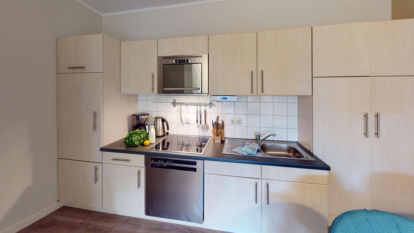 Die Wohnung ist im nordischen Stil eingerichtet. Natur- und Blautöne runden das Gesamtkonzept ab. Das Schlafzimmer ist mit einem Doppelbett ausgestattet. Es gibt zudem ein Wohnzimmer mit einem Essbereich und einer offenen Küche. Die Wohnung bietet eine Terrasse und ein leistungsstarkes WLAN sowie einen Fernseher im Wohnzimmer. Kinder sind herzlich willkommen und können auf Wunsch ein Kinderbett und einen Hochstuhl bekommen. Am Haus sind auch Fahrradabstellplätze vorhanden. Hunde sind in dieser Ferienwohnung nicht erlaubt.