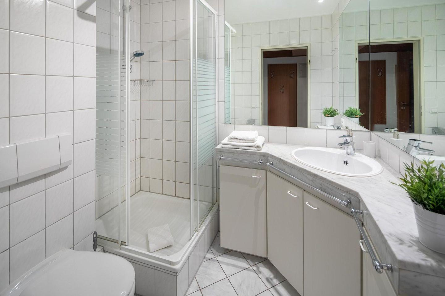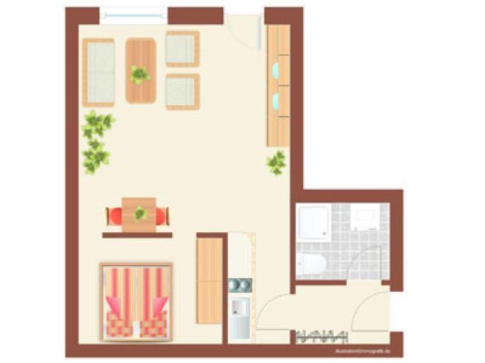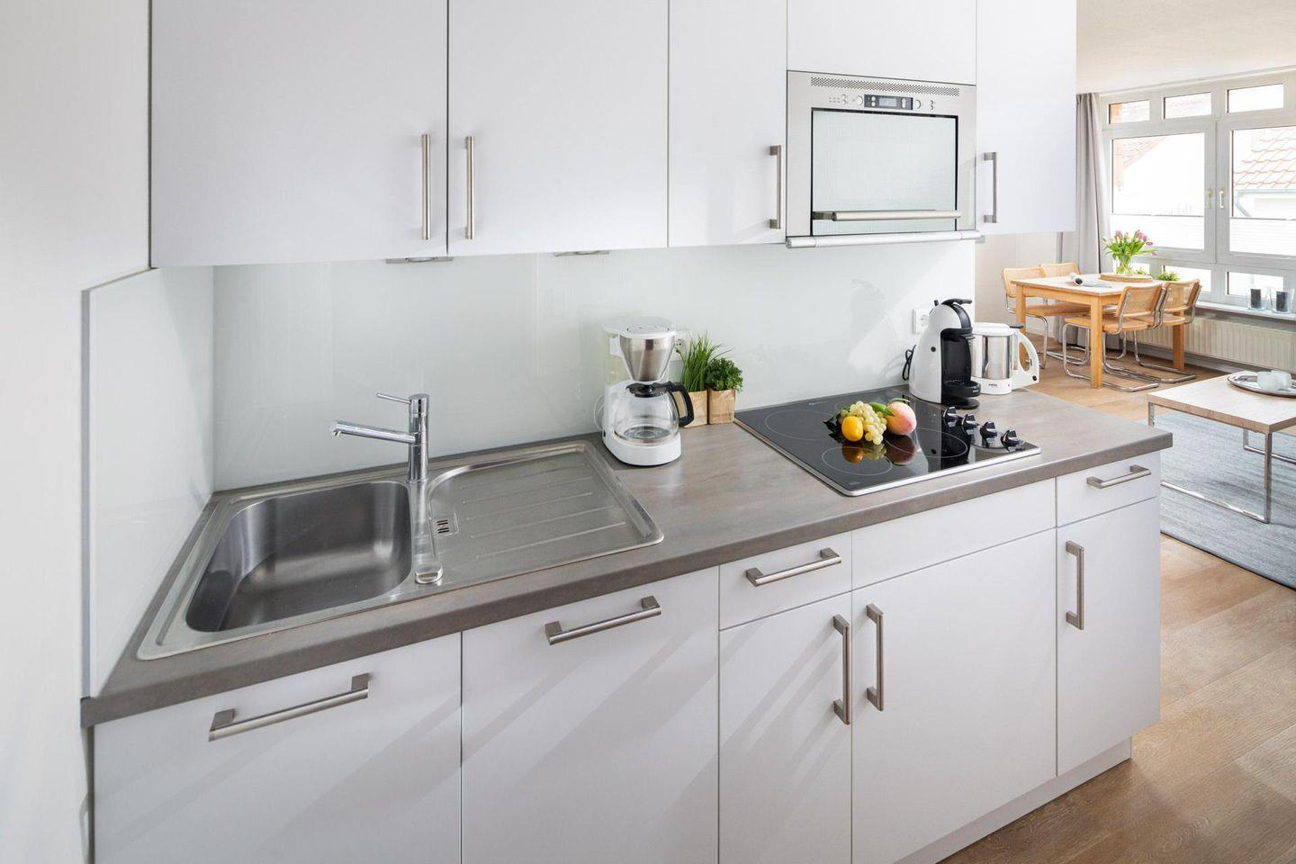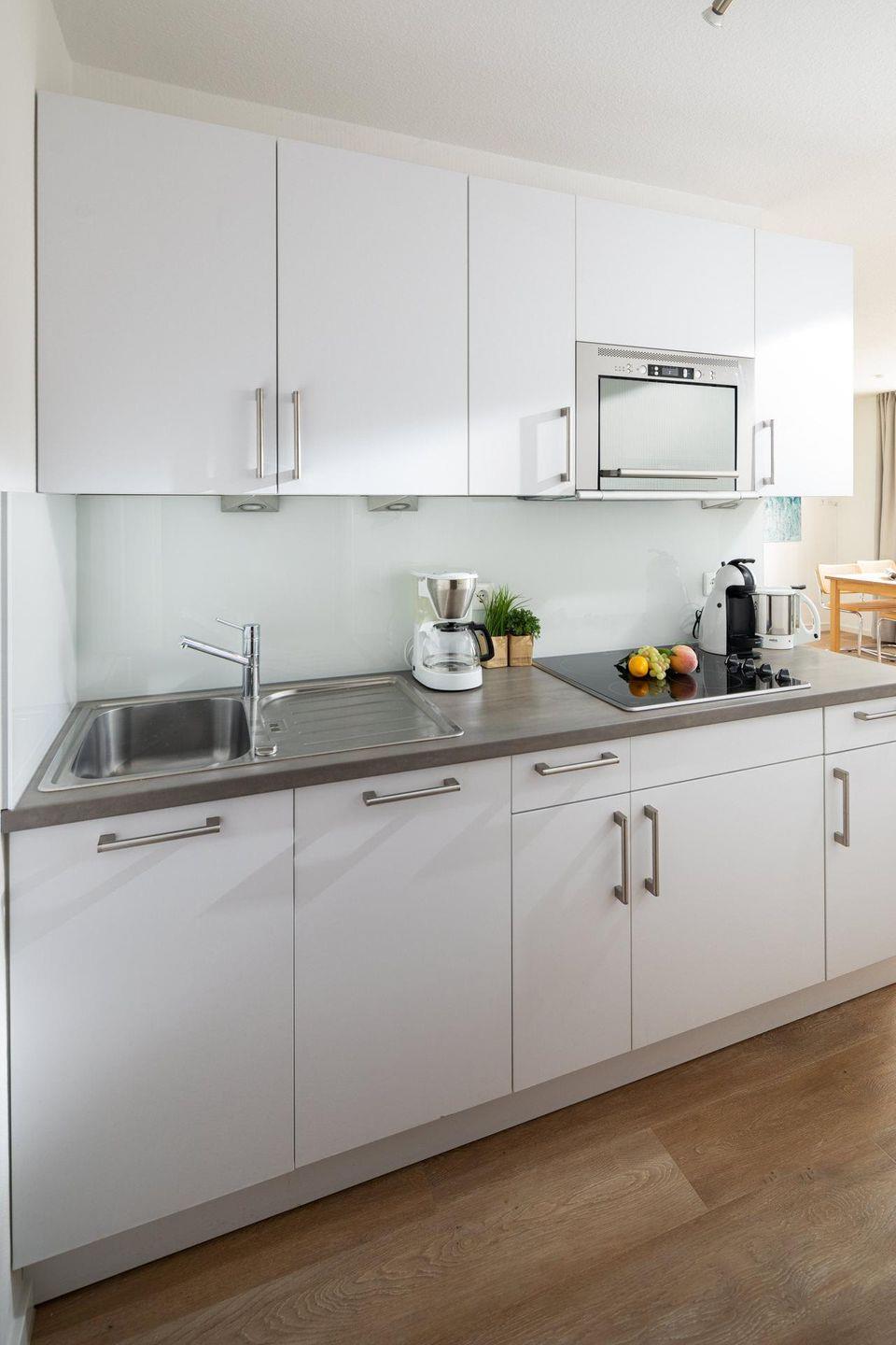 Bei der Ausstattung der Wohnung wurde auf eine helle Einrichtung Wert gelegt. Das Schlafzimmer verfügt über ein Doppelbett (1,60m x 2,00m, aufgeteilt in 2 separate Matratzen) und das Badezimmer wurde mit einer Dusche ausgestattet. Auch ein Haartrockner ist dort vorhanden. Es handelt sich um eine offene Küche, die direkt in das Wohnzimmer übergeht und mit einer Spülmaschine ausgestattet ist. Weiter verfügt die Wohnung über einen kleinen Balkon. Auch Vierbeiner sind in dieser Wohnung herzlich willkommen. Es ist maximal 1 Hund (Höhe maximal kniehoch) erlaubt. Die gemeinschaftlich nutzbare Waschmaschine und der Wäschetrockner erfordern den Einwurf von Münzen.