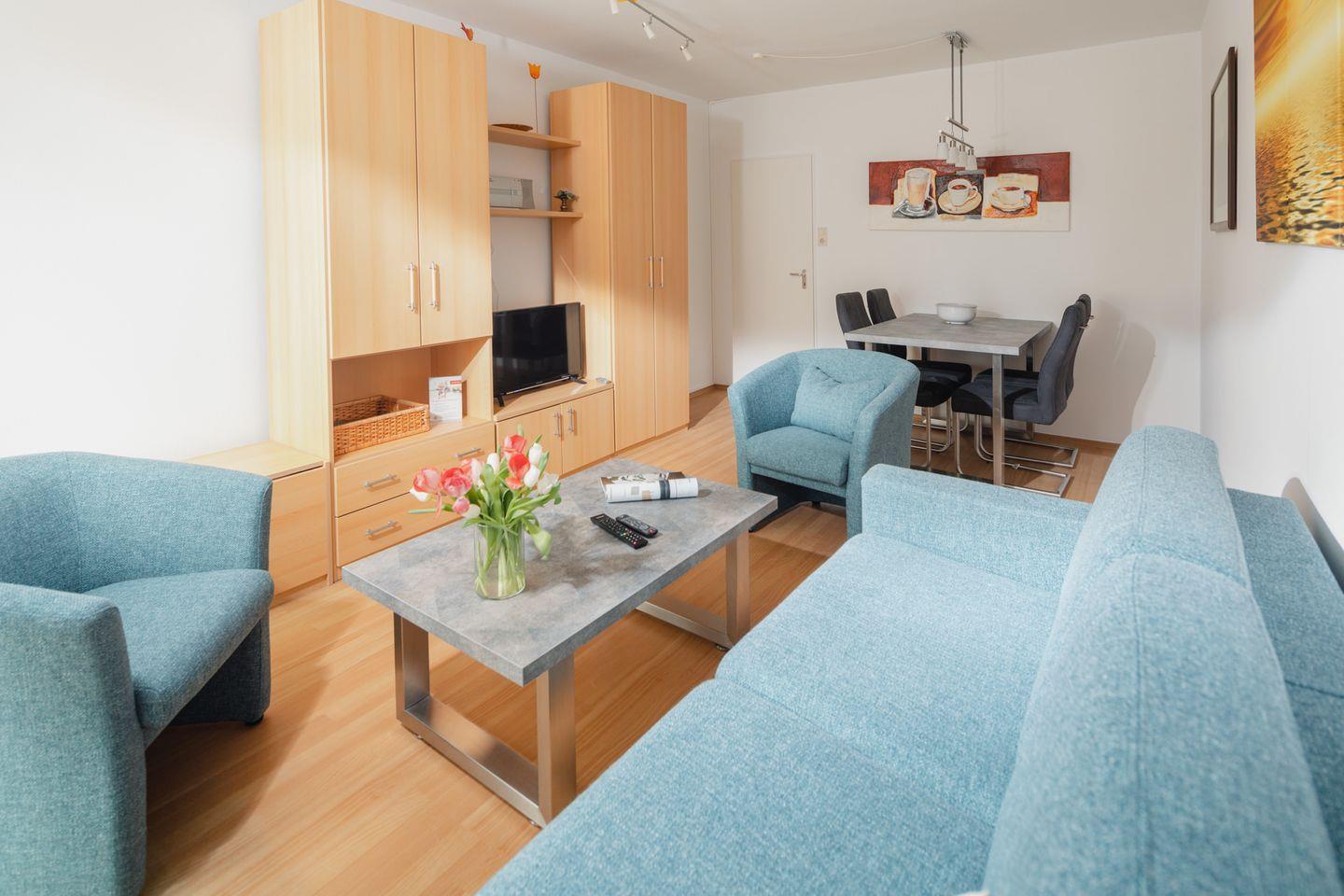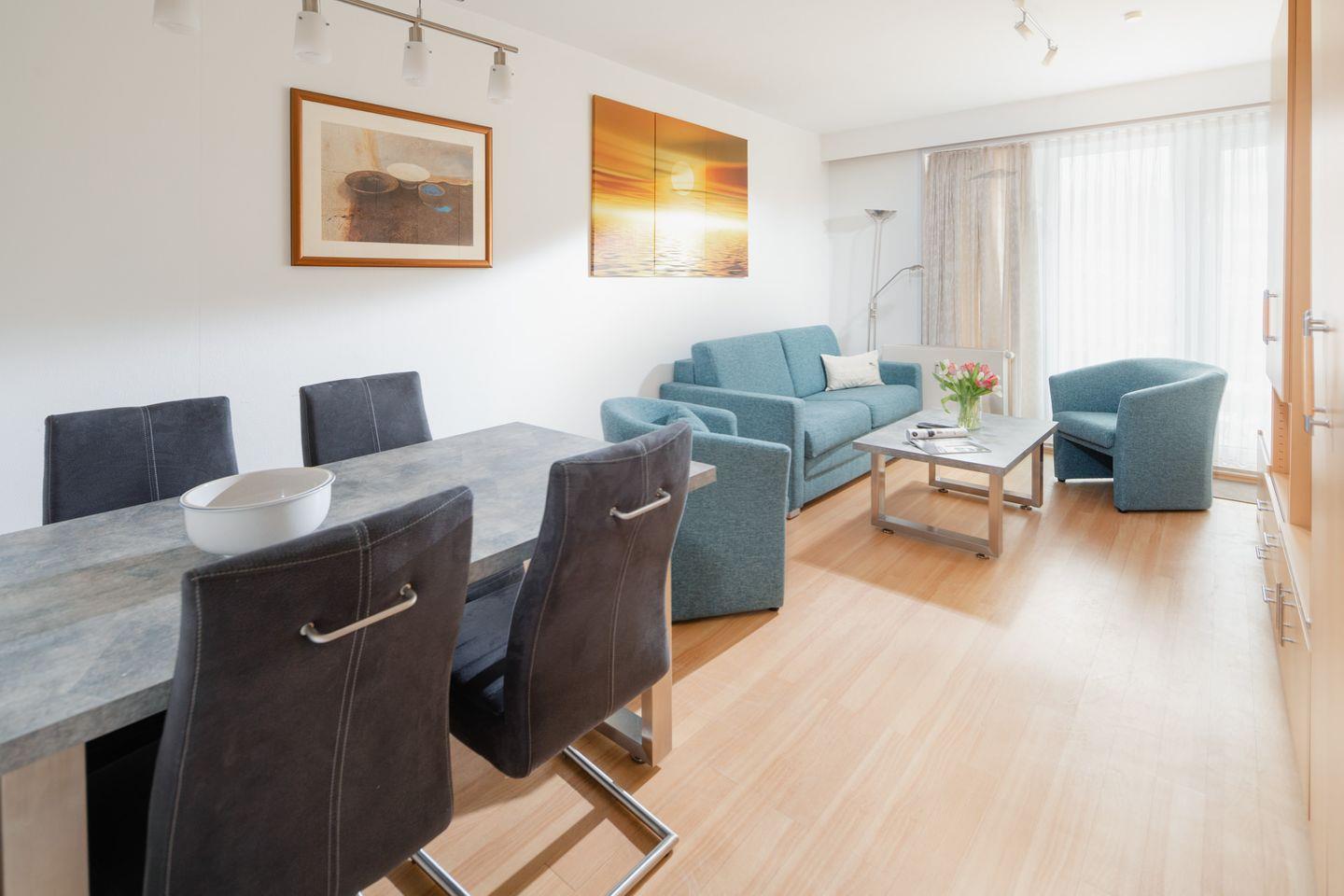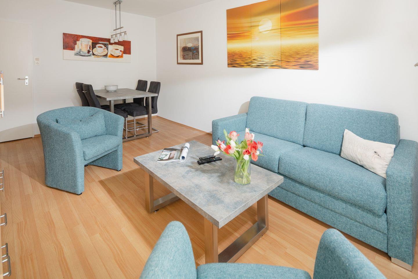 Das Schlafzimmer verfügt über ein Doppelbett. Das Wohnzimmer ist mit einer Schlafcouch ausgestattet, welche eine zusätzliche Schlafmöglichkeit (für bis zu 2 Personen) bietet. Durch diese weitere Schlafmöglichkeit eignet sich diese Wohnung gut für Familien und kleine Gruppen. Das Highlight der Wohnung sind die zwei Balkone (seitlicher Meerblick). Im Apartmenthaus "Kaiserhof" stehen den Bewohnern eine Waschmaschine und ein Wäschetrockner (beide mit Münzeinwurf) zur Verfügung. Zusätzlich steht eine Sauna bereit, die ebenfalls gegen Münzeinwurf nutzbar ist. Es ist zu beachten, dass das Schwimmbad aufgrund eines technischen Defektes geschlossen ist. Fahrräder können vor dem Haus (Nordseite) oder im Fahrradraum abgestellt werden. Hunde sind in dieser Wohnung nicht erlaubt.
