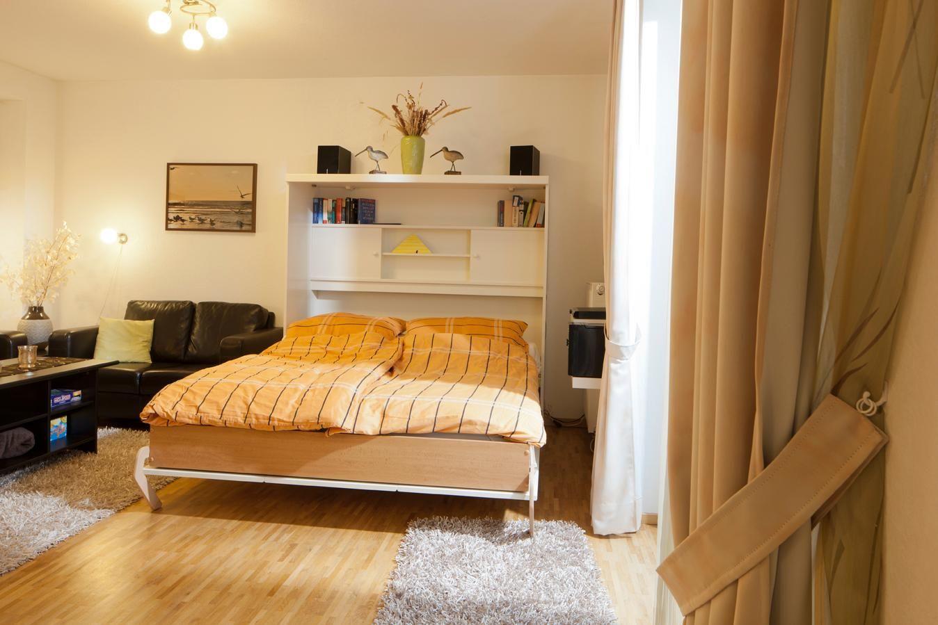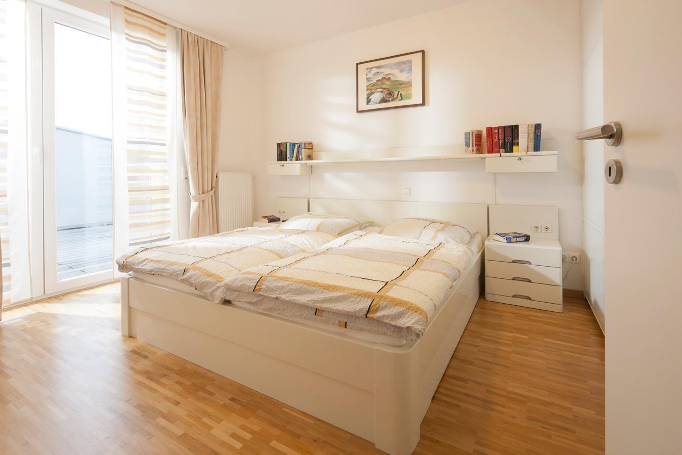 Die Wohnung 7 liegt auf der von der Straße abgewandten Seite. Im Inneren der Wohnung befindet sich ein Wohnbereich mit einem Schrankbett (160 cm Breite) und einer modernen Küche. Weiter gibt es ein separates Schlafzimmer mit einem Doppelbett und einem Zugang zur Terrasse. Das helle und gut ausgestattete Badezimmer rundet das Raumangebot ab. Das Highlight der Wohnung ist die ca. 18qm große Terrasse. Diese kann nicht nur durch das Schlafzimmer betreten werden, sondern auch durch den Wohnbereich. Waschmaschine und Wäschetrockner befinden sich im Haus und stehen (für die gemeinschaftliche Nutzung gegen Münzeinwurf) zur Verfügung, was besonders für längere Aufenthalte von Vorteil ist. Hunde sind in dieser Wohnung nicht erlaubt.
