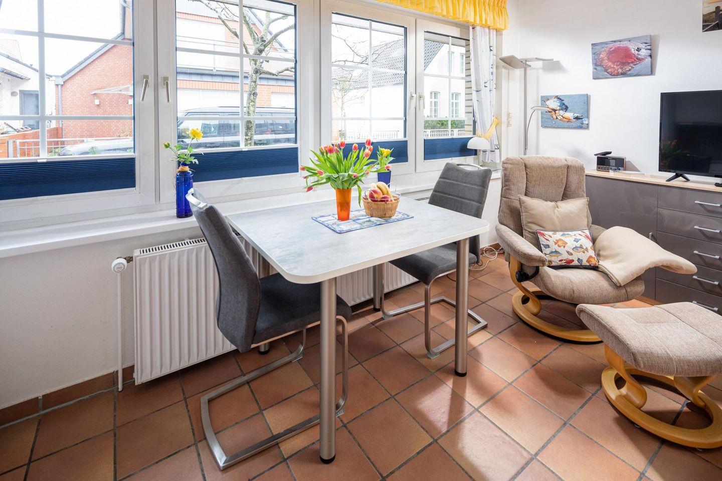 Die Nähe zur Innenstadt ist ein Vorteil dieser Unterkunft. Innerhalb von wenigen Gehminuten sind zahlreiche Cafés, Restaurants oder andere Einkaufsmöglichkeiten erreichbar. Hier darf auch der vierbeinige Freund mitkommen, denn die Ferienwohnung "Büx" heißt auch Hunde herzlich willkommen. Erlaubt ist maximal 1 Hund (Höhe maximal kniehoch). Die Hundewiese befindet sich in der Nähe des Fährhafens (kein Leinenzwang).