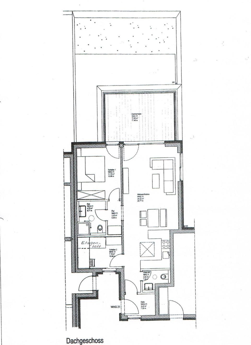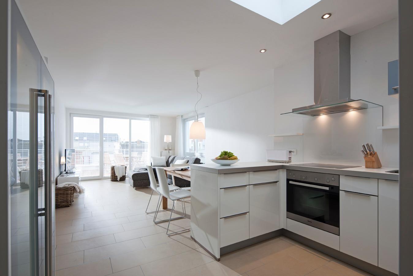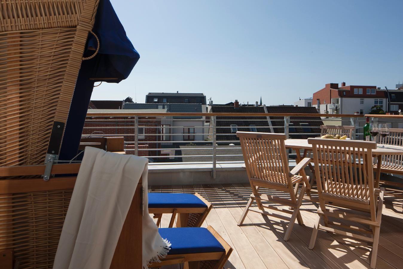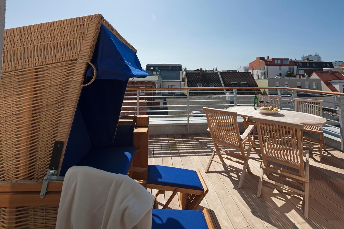 Die Ausstattung der Wohnung ist erstklassig - von der Fußbodenheizung über den Strandkorb bis hin zur hochwertigen Möblierung. Die Wohnung verfügt über zwei Schlafzimmer - eines mit einem Doppelbett, das andere mit einem Etagenbett. Zum Badezimmer mit einer Dusche gibt es auch ein Gäste-WC. Die gut ausgestattete Küchenzeile verfügt über alle Annehmlichkeiten, einschließlich eines Thermomix. Der Wohnbereich ist mit einer Essecke ausgestattet. Die 20 qm große Dachterrasse, die nach Westen und straßenabgewandt ausgerichtet ist, ist ein Highlight der Wohnung. Waschmaschine und Wäschetrockner befinden sich im Haus und stehen (für die gemeinschaftliche Nutzung gegen Münzeinwurf) zur Verfügung, was besonders für längere Aufenthalte von Vorteil ist. Hunde sind in dieser Wohnung nicht erlaubt.