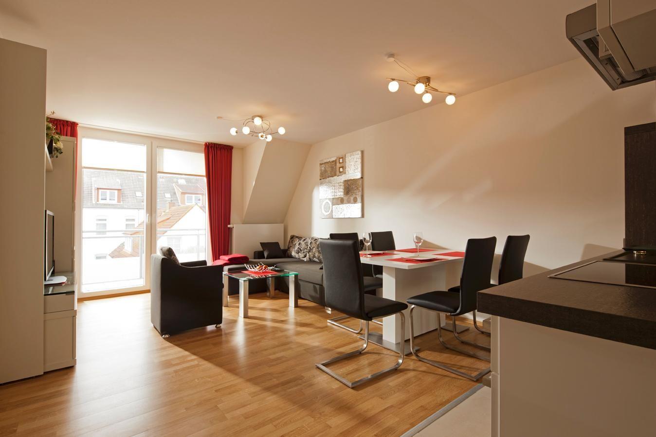 Zusätzlich zu den Schlafzimmern verfügt die Wohnung über zwei Bäder. Der Wohnbereich bietet zur Sitzecke und neben einer offenen Küche auch einen Essbereich. Ein besonderes Highlight der Wohnung sind die beiden Balkone. Hunde sind in dieser Ferienwohnung nicht erlaubt.