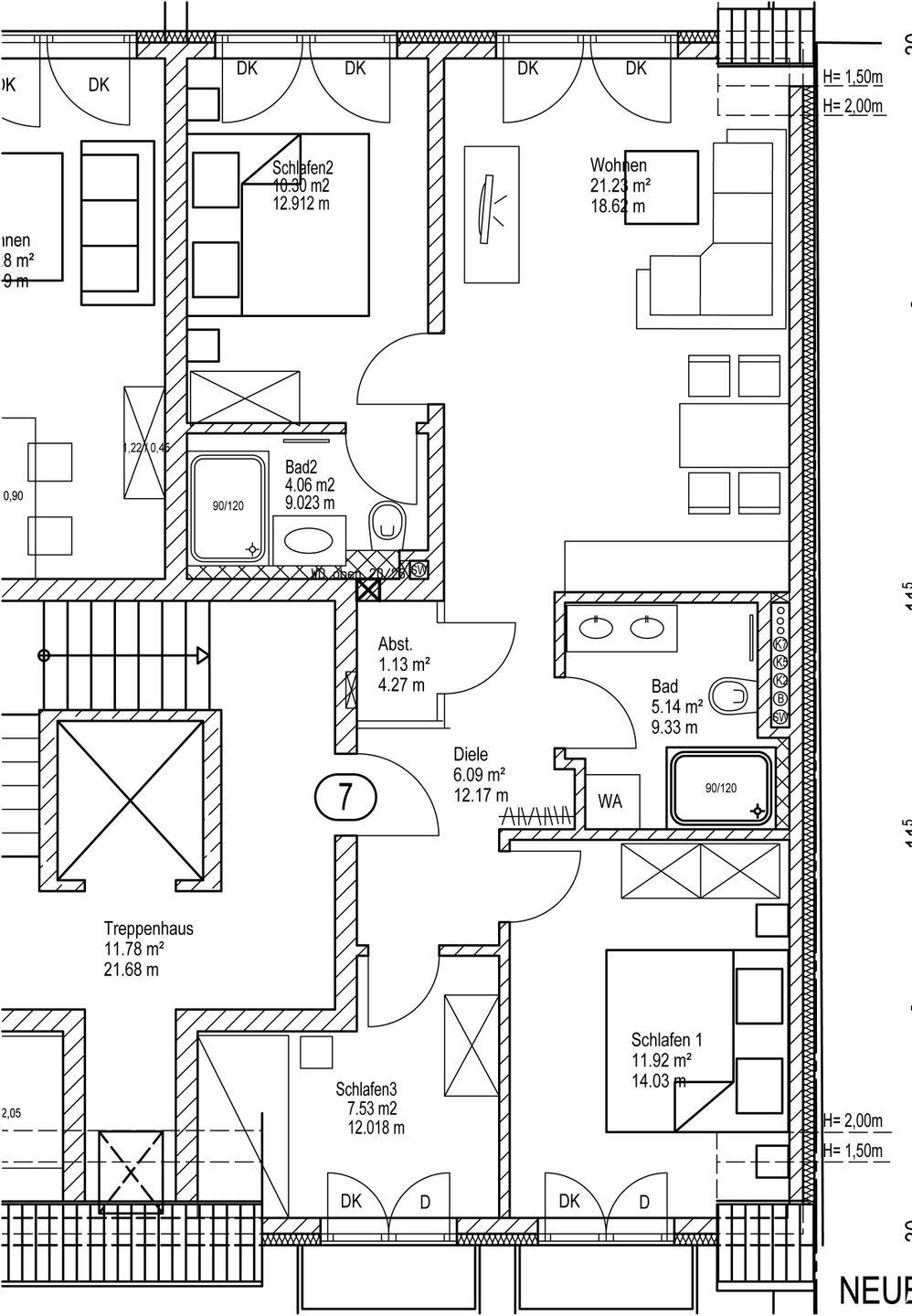 Die Wohnung besticht durch ihre erstklassige Ausstattung und eine sehr großzügige Raumaufteilung. Sie verfügt über drei Schlafzimmer: Zwei davon sind mit Doppelbetten (200 cm) ausgestattet, das dritte Schlafzimmer bietet ein gemütliches Einzelbett (190 cm).