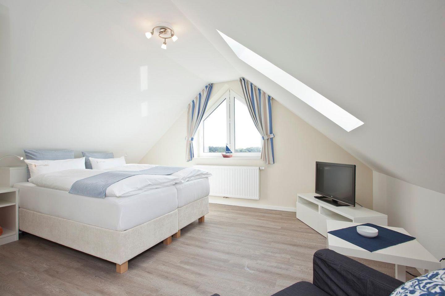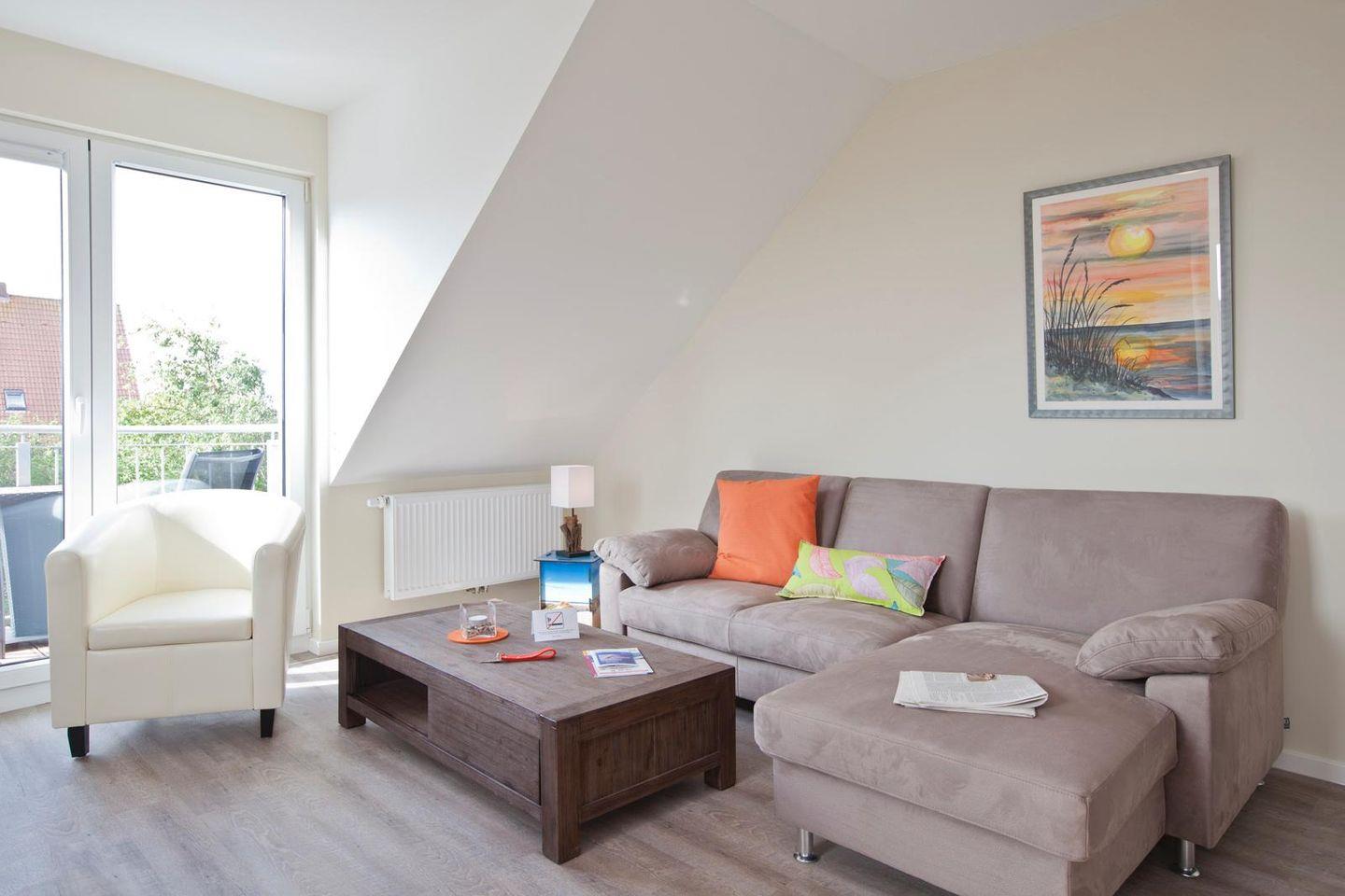 Die Ferienwohnung "Sanddorn" im Haus "Inselzauber" erstreckt sich über zwei Etagen und befindet sich im 2. Ober- und Dachgeschoss des Hauses, wobei eine Treppe innerhalb der Wohnung die beiden Ebenen verbindet. Die Wohnung ist modern eingerichtet und bietet Platz für bis zu vier Personen. Sie ist ideal für Familien oder kleinere Gruppen. Es ist zu beachten, dass Gruppenreisen oder Clubaufenthalte in dieser Wohnung leider nicht möglich sind.