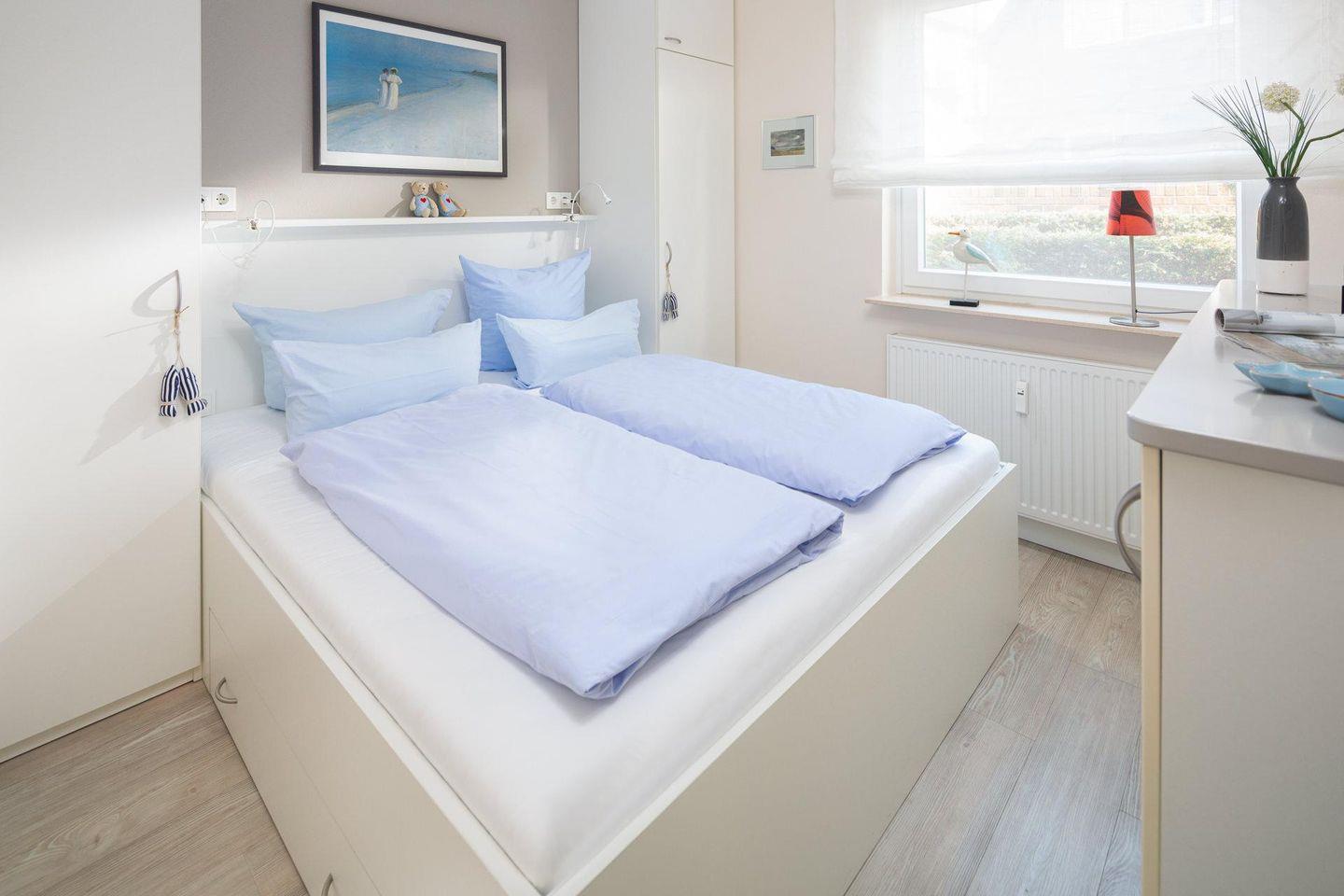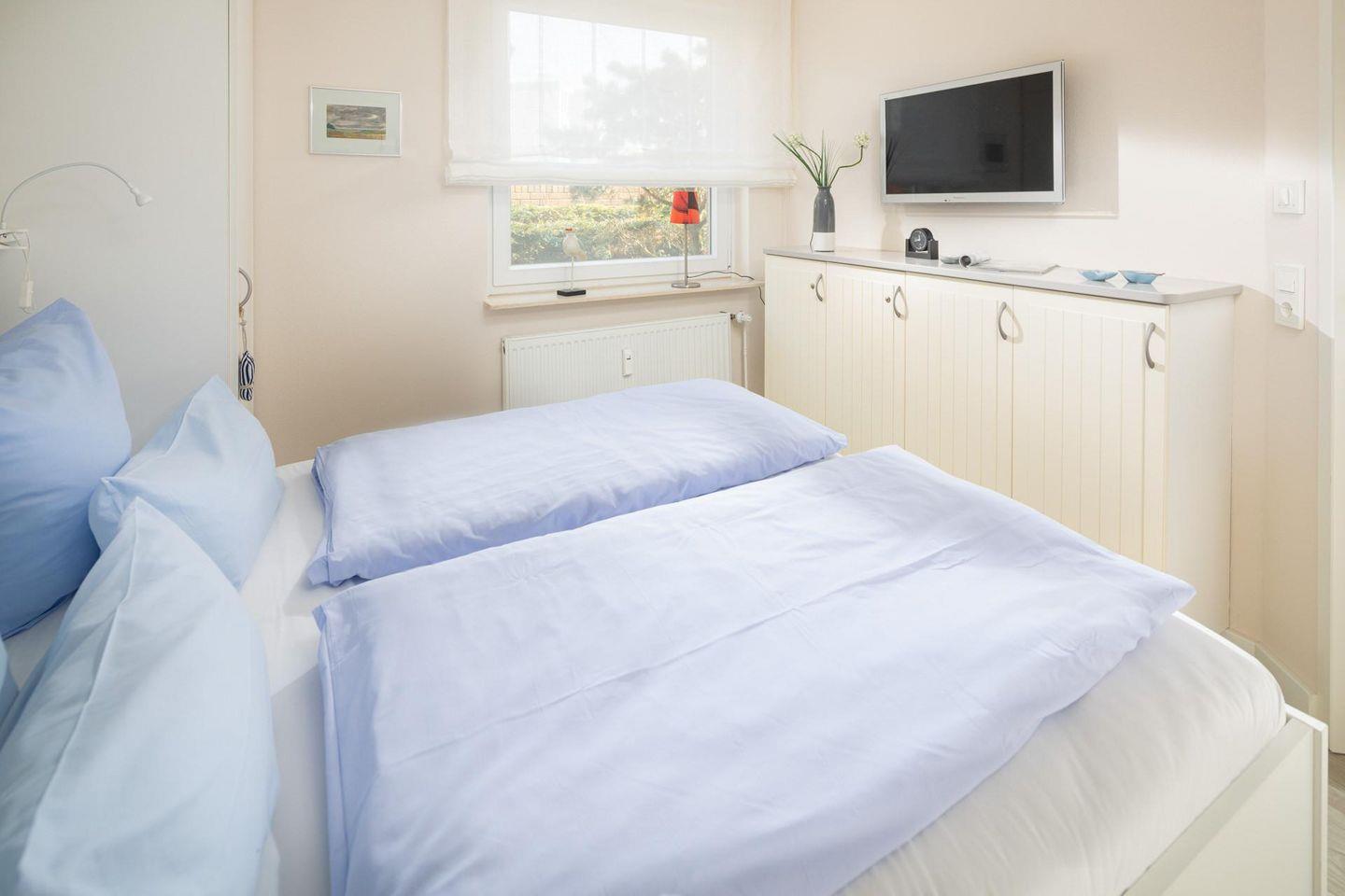 Ein weiterer Vorteil der Ferienwohnung "Blue Pearl" ist ihre barrierefreie Erreichbarkeit, da sie sich ebenerdig befindet. Hunde sind in dieser Wohnung nicht gestattet. Der Strand ist nur einen Steinwurf entfernt (ca. 100m).