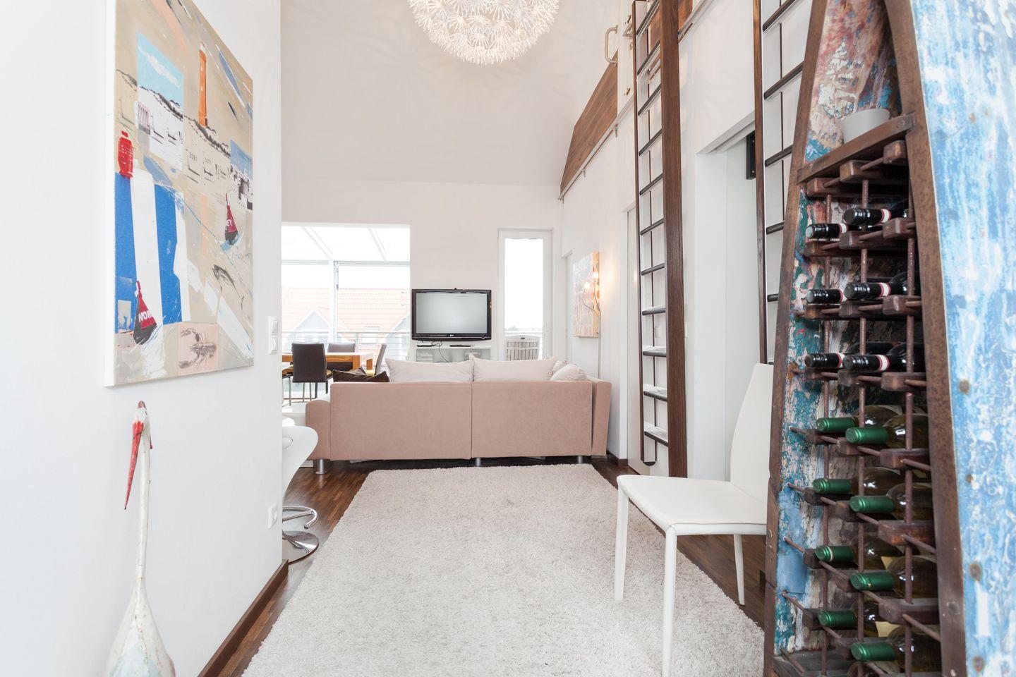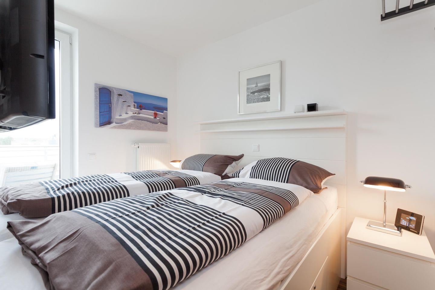 Die Wohnung verfügt über zwei Schlafzimmer - eines mit einem Doppelbett (1,80m breit) und eines mit einem Doppelbett (1,60m breit), so dass vier Personen einen Schlafplatz finden. Im Wohnbereich ist ein Holzofen eingebaut. Des Weiteren finden sich im Wohnbereich eine Sitzecke, eine Essecke und eine voll ausgestattete offene Küche. Das moderne Badezimmer verfügt über eine ebenerdige Dusche. Die Wohnung verfügt zudem über zwei Terrassen.