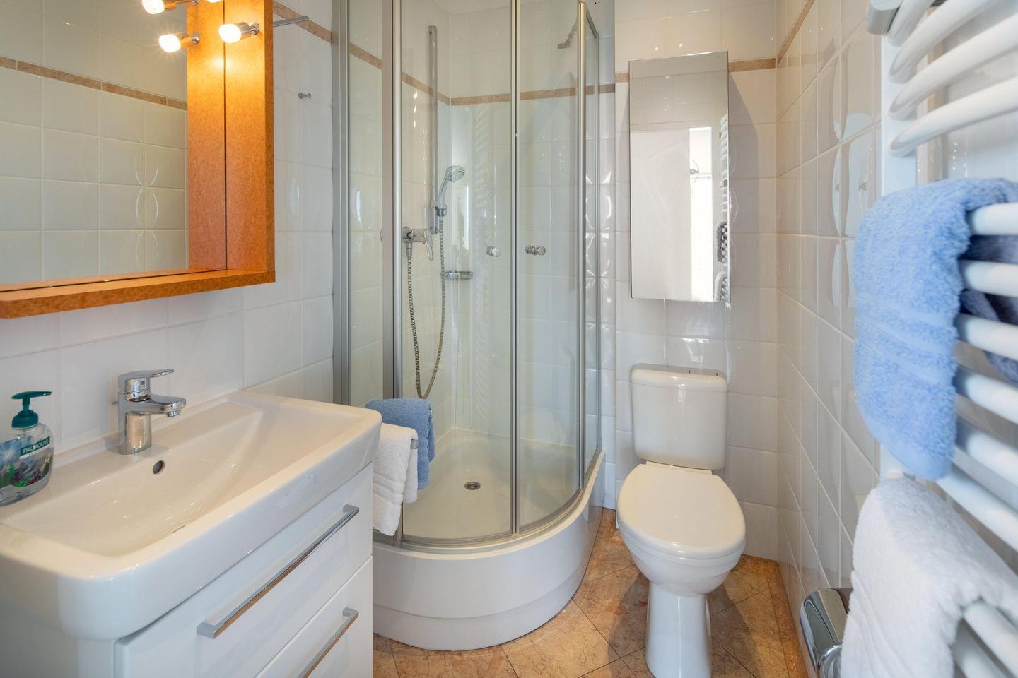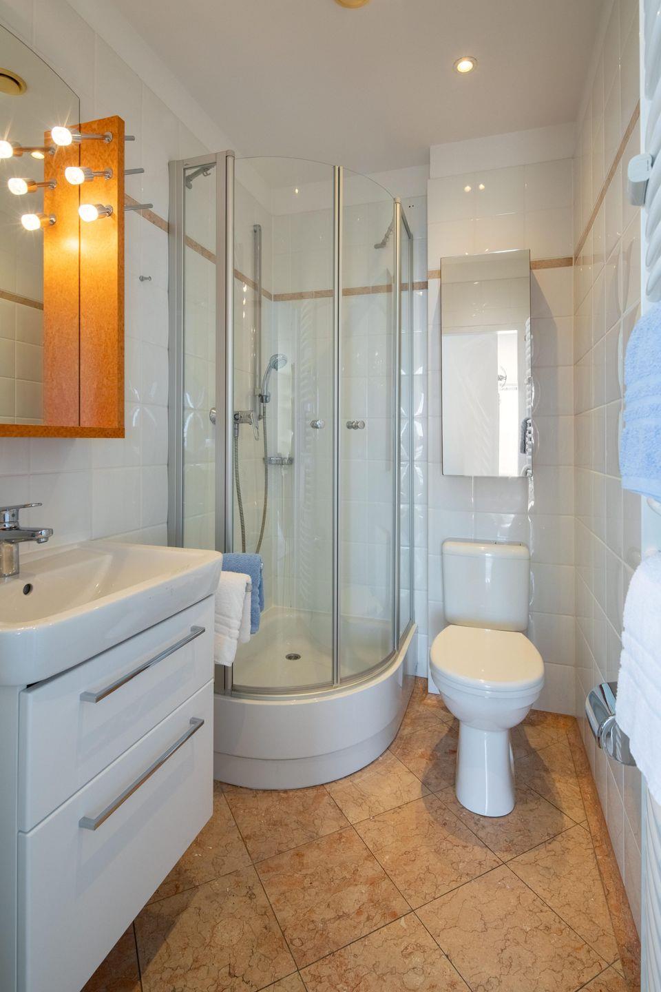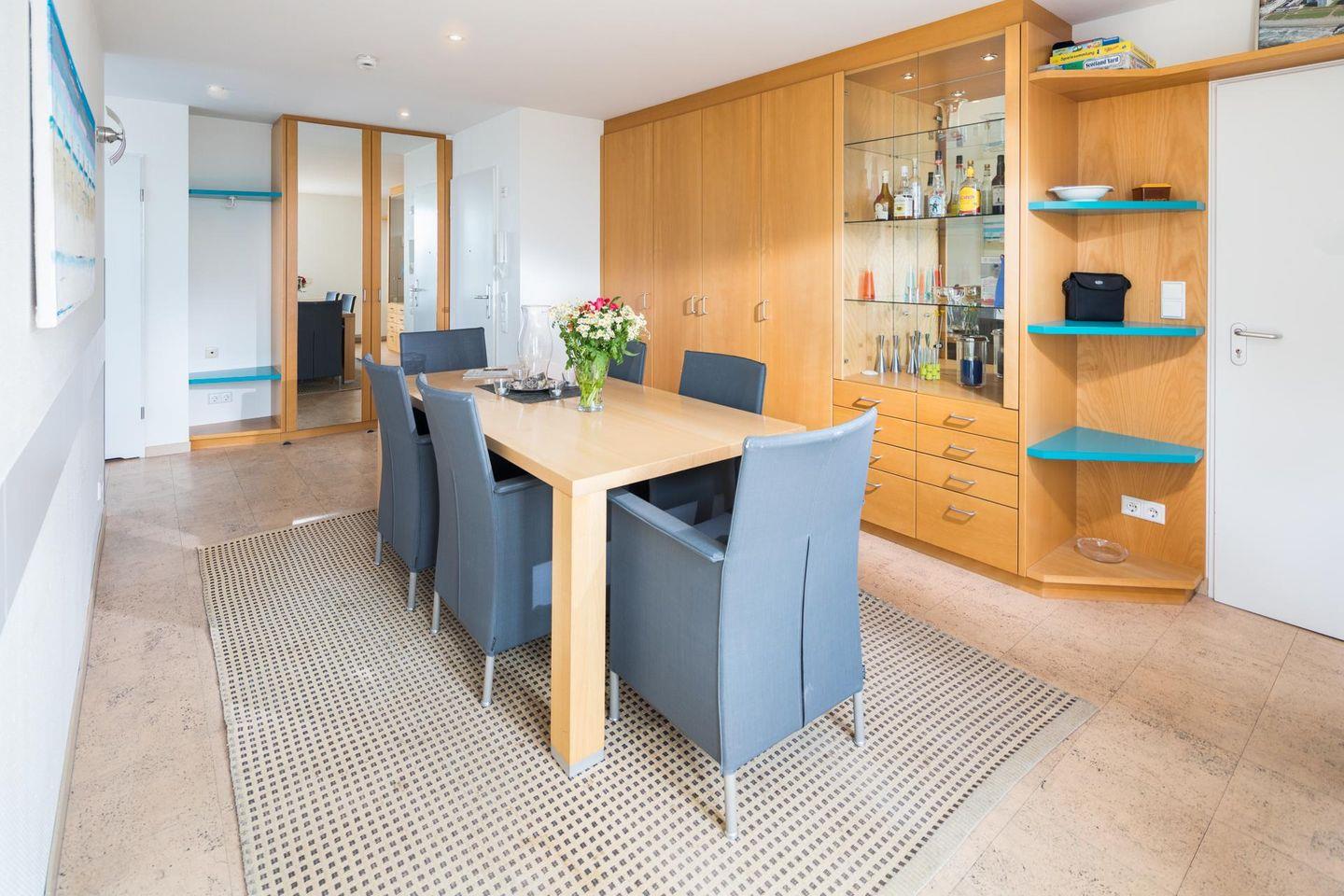 Die Wohnung ist mit einem Wohn-/Schlafzimmer mit einem Doppelbett und einer Couch, einer Küche, einem Essbereich, einer zweiten Schlafmöglichkeit mit Etagenbett und Couch sowie zwei Badezimmern ausgestattet. Ein Badezimmer verfügt über eine Dusche und das andere über eine Dusche und über eine Eckbadewanne. Ein Highlight ist die Terrasse (Dachterrasse), die sich auf der südlichen, westlichen und nördlichen (Meer-) Seite erstreckt. Von dort kann man direkt auf das Meer blicken.