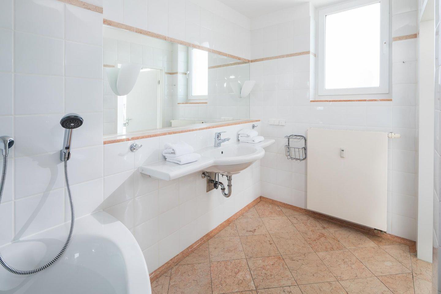 Im Apartmenthaus "Kaiserhof" stehen den Bewohnern eine Waschmaschine und ein Wäschetrockner (beide mit Münzeinwurf) zur Verfügung. Zusätzlich steht eine Sauna bereit, die ebenfalls gegen Münzeinwurf nutzbar ist. Es ist zu beachten, dass das Schwimmbad aufgrund eines technischen Defektes geschlossen ist. Fahrräder können vor dem Haus (Nordseite) oder im Fahrradraum abgestellt werden. Hier darf auch der vierbeinige Freund mitkommen, denn die Ferienwohnung heißt auch Hunde herzlich willkommen. Erlaubt ist maximal 1 Hund (Höhe maximal kniehoch). Die Hundewiese befindet sich in der Nähe des Fährhafens (kein Leinenzwang).
