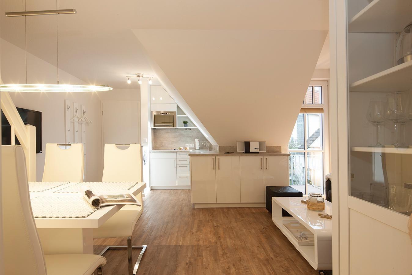 Die Ferienwohnung "Villa Brunnenhof 4" befindet sich in der ersten Etage sowie im Spitzboden der Villa "Brunnenhof". Die Wohnung wurde im Herbst 2013 fertiggestellt und liegt in der Brunnenstraße. Auf insgesamt 49 Quadratmetern bietet die Wohnung Platz für bis zu 5 Personen. Der Weststrand und das Kurzentrum mit Kurplatz und Thalassozentrum liegen gleich um die Ecke.