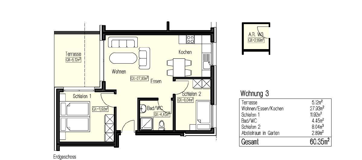 Die Wohnung befindet sich im Erdgeschoss und bietet eine geschützte Terrasse. Mit zwei Schlafzimmern - eines mit einem Doppelbett und das andere mit zwei Einzelbetten - bietet die Wohnung genügend Platz für bis zu vier Personen. Das Wohnzimmer ist mit einer Küchenzeile und einem Esstisch ausgestattet und verfügt über ein Schlafsofa, das bei Bedarf als zusätzlicher Schlafplatz genutzt werden kann. Das Badezimmer ist mit einer "Regendusche" und WC ausgestattet. Eine automatische Be- und Entlüftung sorgt für ein angenehmes Raumklima und die Schlafräume lassen sich durch Vorhänge bzw. Plissees verdunkeln. Für evtl. Wertsachen steht in der Wohnung ein Safe zur Verfügung. Im Haus befindet sich ein Wäscheraum mit Münzwaschmaschine und -trockner. Hier darf auch der vierbeinige Freund mitkommen, denn die Ferienwohnung heißt auch Hunde herzlich willkommen. Erlaubt ist maximal 1 Hund (Höhe maximal kniehoch). Die Hundewiese befindet sich in der Nähe des Fährhafens (kein Leinenzwang).