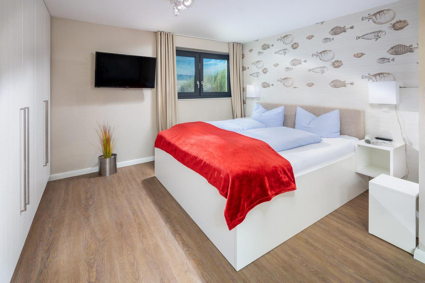 Ein Highlight der Ferienwohnung ist die knapp 20 Quadratmeter große Südterrasse. Die Wohnung wird seit August 2018 ohne Parkplatz angeboten. Hunde sind in dieser Wohnung erlaubt. Erlaubt ist maximal 1 Hund (Höhe maximal kniehoch). Die Hundewiese befindet sich in der Nähe des Fährhafens (kein Leinenzwang).