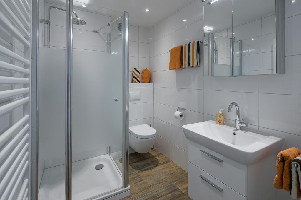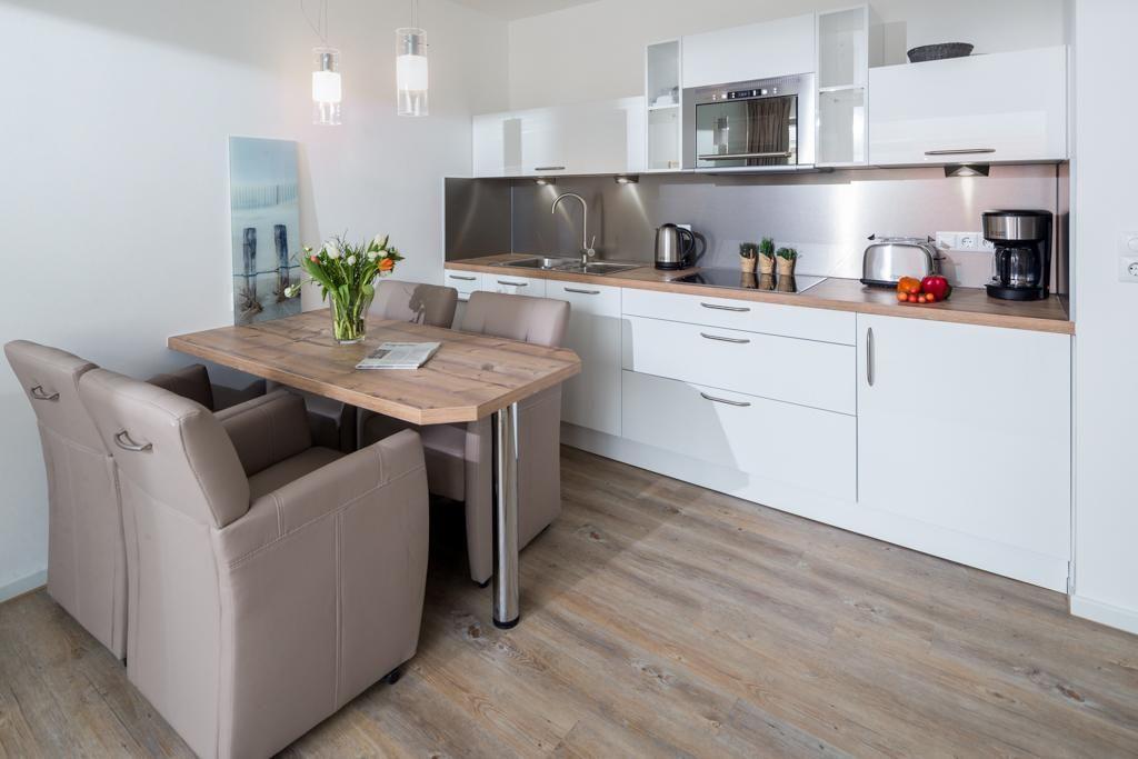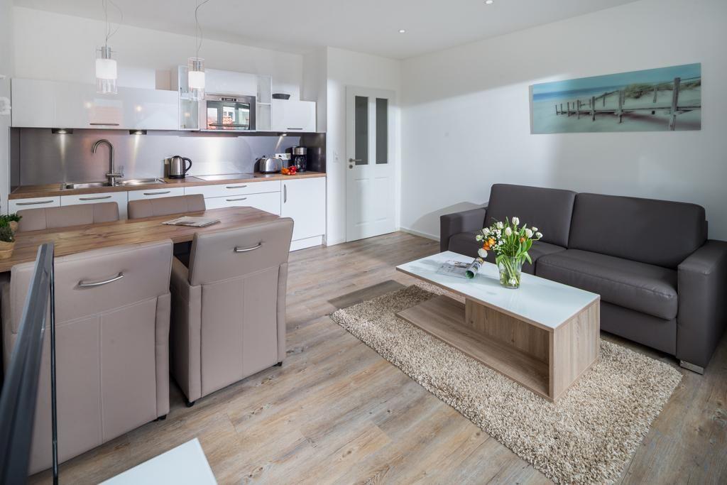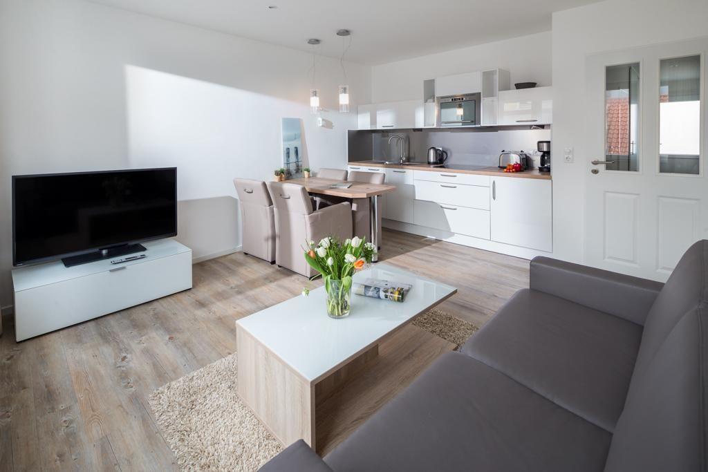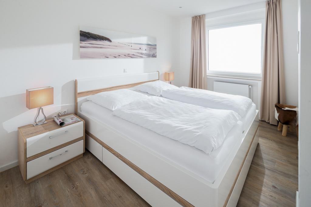 Das Schlafzimmer ist mit einem Doppelbett eingerichtet. Das Wohnzimmer verfügt über eine Schlafcouch, die eine zusätzliche Schlafgelegenheit bietet. Die Küchenzeile in der Ferienwohnung "Eilers" ist gut und modern ausgestattet. Das Badezimmer wurde von Grund auf erneuert und entspricht modernen Standards. Für Gäste, die die Insel gerne mit dem Fahrrad erkunden möchten, bietet die Ferienwohnung den Vorteil, dass Fahrräder sicher auf dem Hinterhof abgestellt werden können. Hunde sind in dieser Wohnung nicht erlaubt.