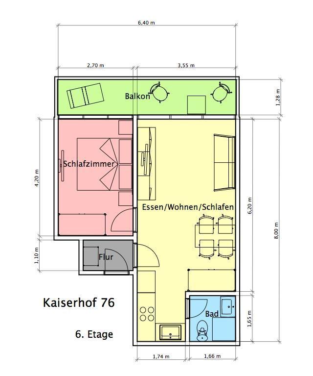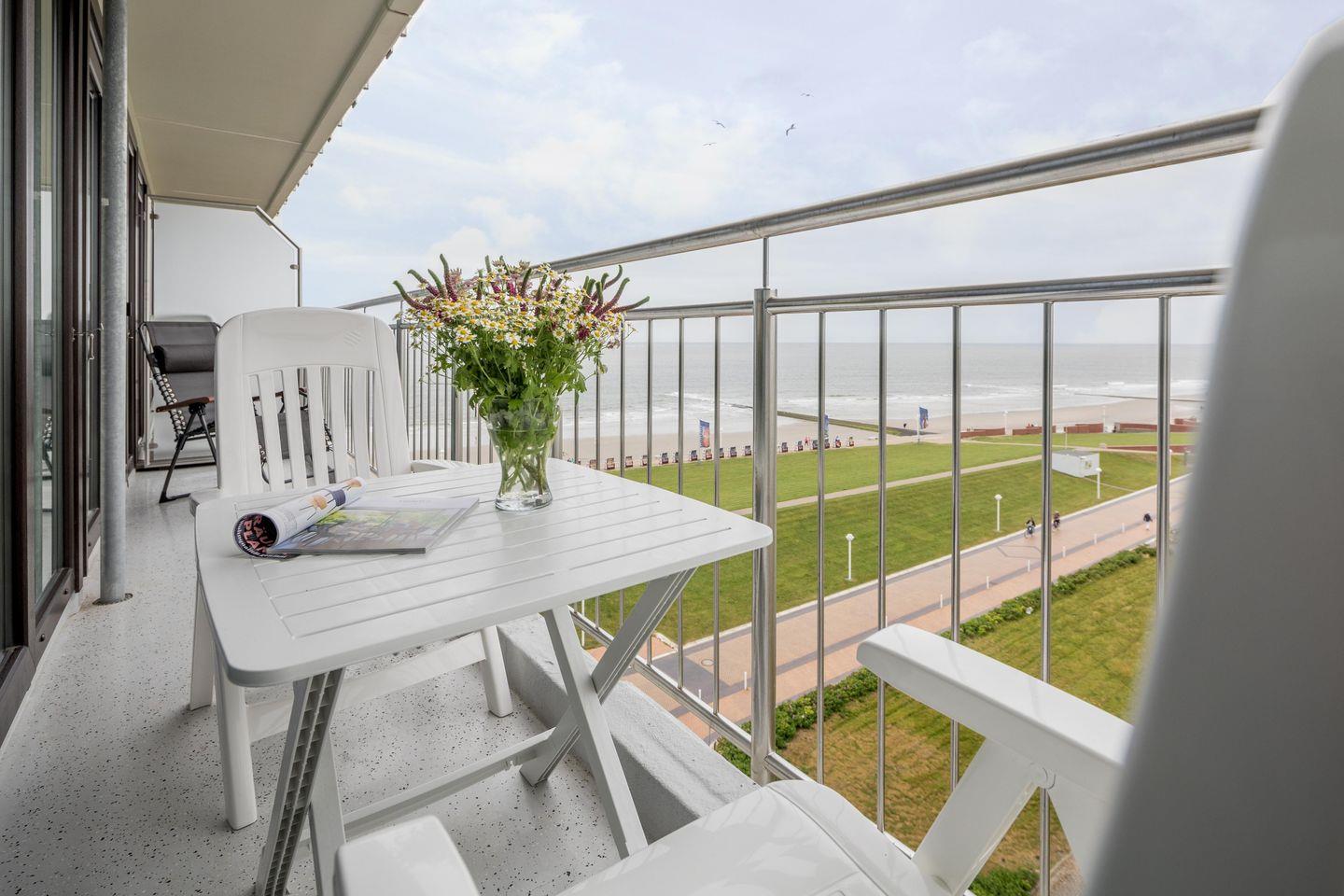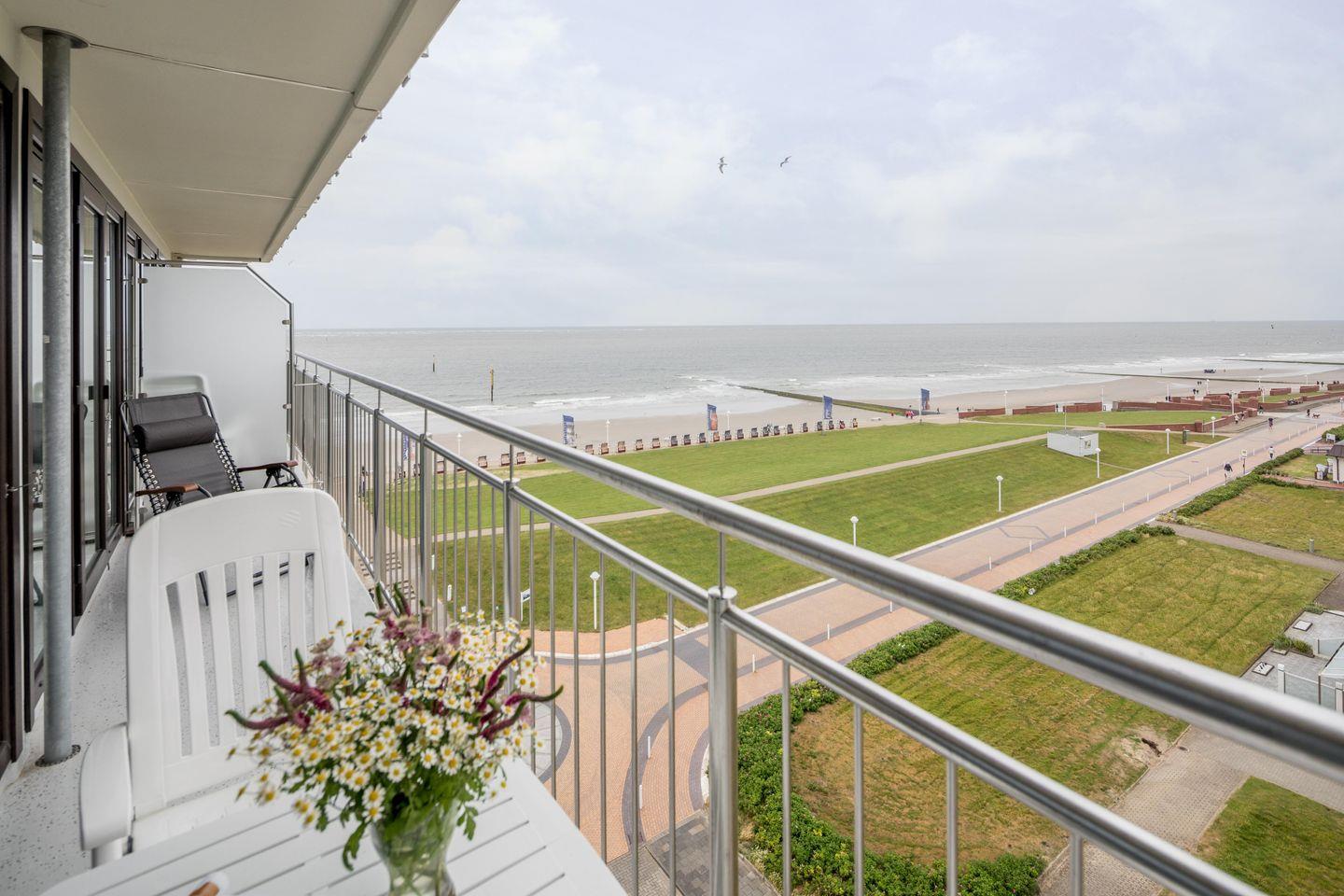 Die Ferienwohnung "Kaiserhof 76" befindet sich im Apartmenthaus "Kaiserhof", das an der Ecke Bismarckstraße und Kaiserstraße liegt. Das Haus liegt direkt am Meer, nur wenige Schritte vom Strand entfernt. Die Wohnung befindet sich im sechsten Stock und bietet Platz für bis zu 4 Personen. Im Haus gibt es einen Fahrstuhl.