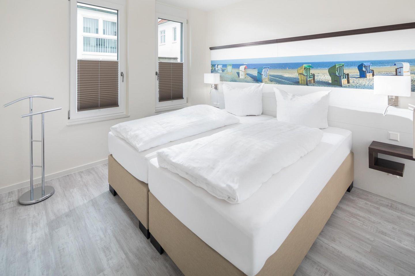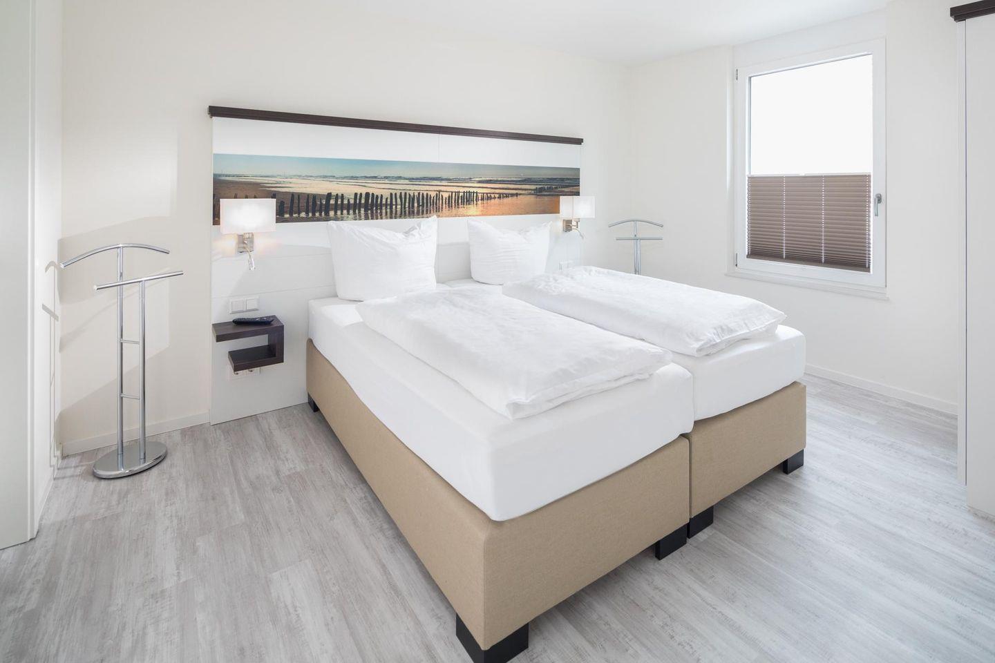 In der Wohnung stehen insgesamt 3 Schlafzimmer zur Verfügung: Zwei der Schlafzimmer sind mit Doppelbetten ausgestattet, während das dritte Schlafzimmer über ein Einzelbett verfügt. Dadurch eignet sich die Wohnung ideal für Familien oder Gruppen. Zudem sind zwei Badezimmer in der Wohnung vorhanden. Eine Besonderheit der Ferienwohnung ist die kleine Loggia, die eine Fläche von 5 Quadratmetern aufweist. Diese Loggia ist nach Süd-Westen ausgerichtet. Ein weiterer Pluspunkt des Aufenthalts im Haus Insulaner ist der angebotene Frühstücksservice. Gäste können ein Frühstück im Hotel Friese genießen, das sich schräg gegenüber befindet. Kosten und Buchung müssen von den Gästen direkt mit dem Hotel abgesprochen werden. Auch Hunde sind hier erlaubt, maximal ein Hund (Höhe maximal kniehoch). Die Hundewiese befindet sich in der Nähe des Fährhafens (kein Leinenzwang).