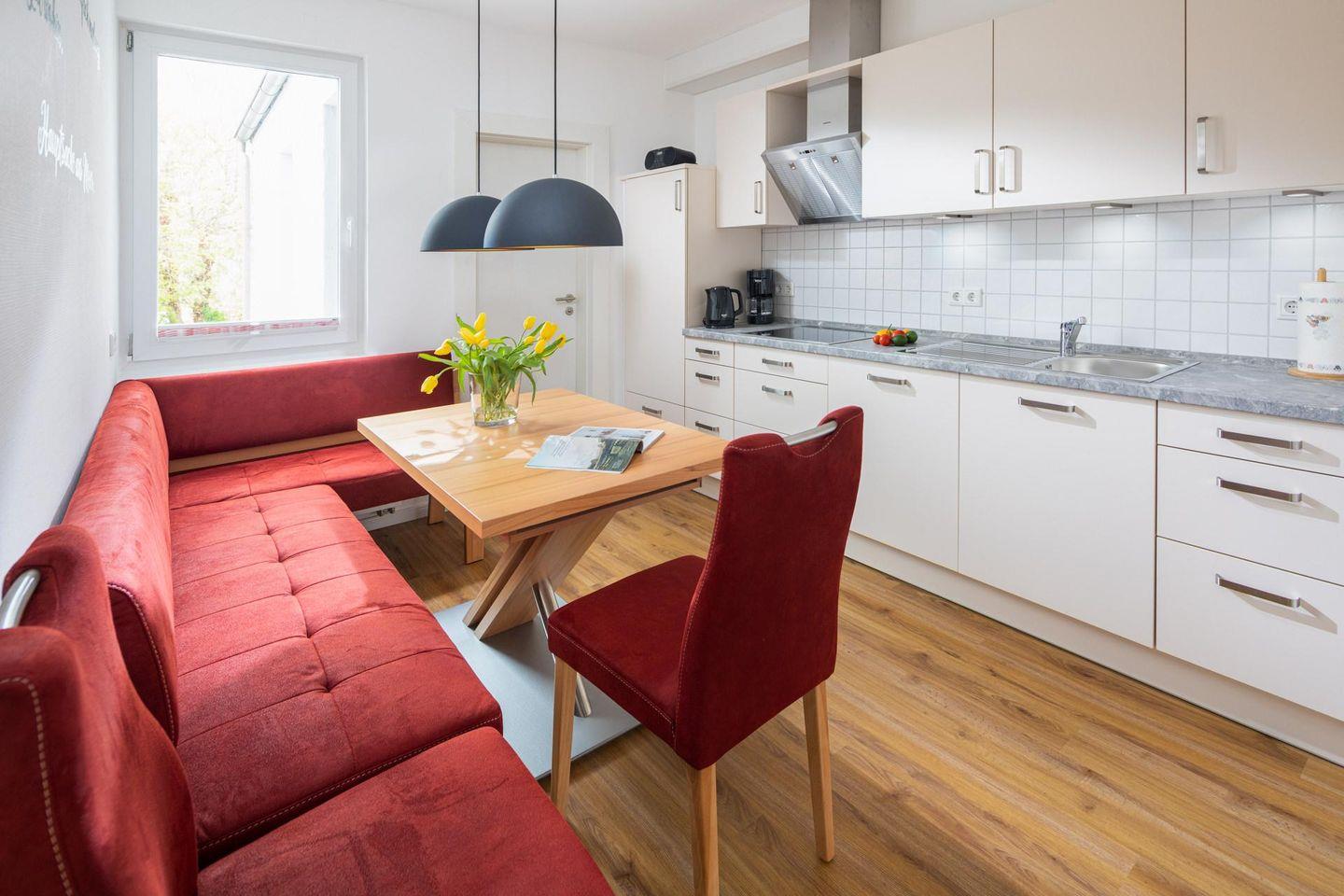 "Herrliche 86 qm auf 2 Ebenen. Zu fünft macht hier Urlaub Spaß - jeder hat sein bequemes Bett und man trifft sich zum Kochen, Essen und Zusammensein im gemütlichen Küchen- und Wohnbereich"