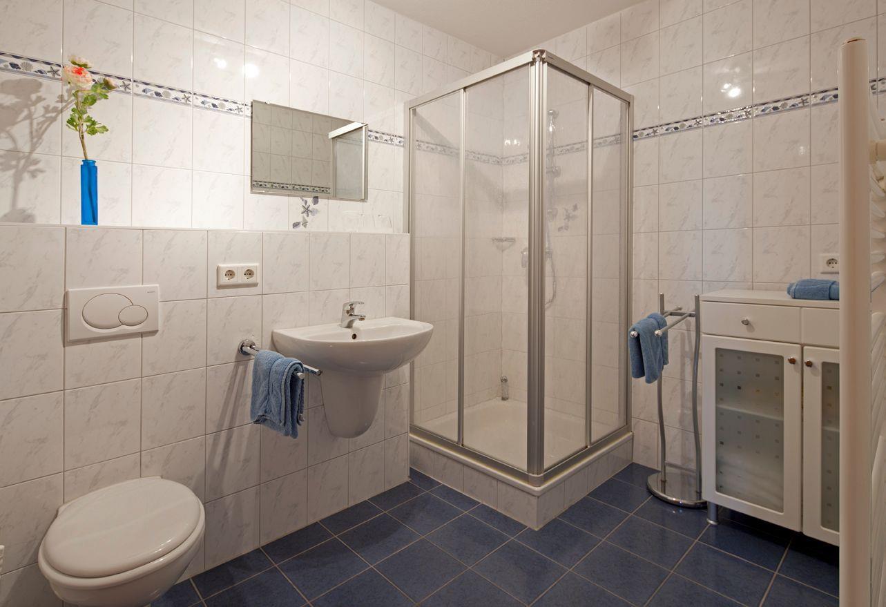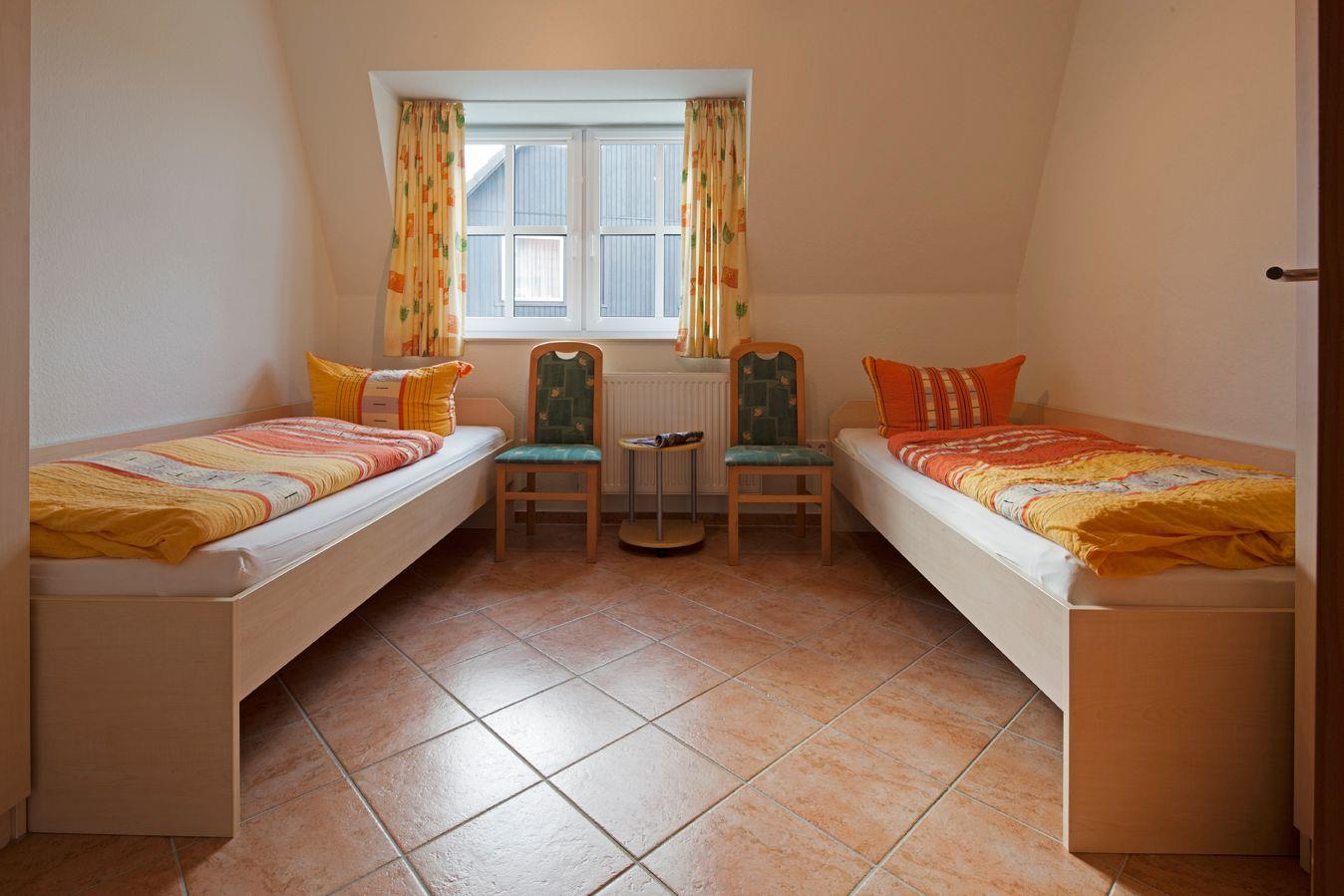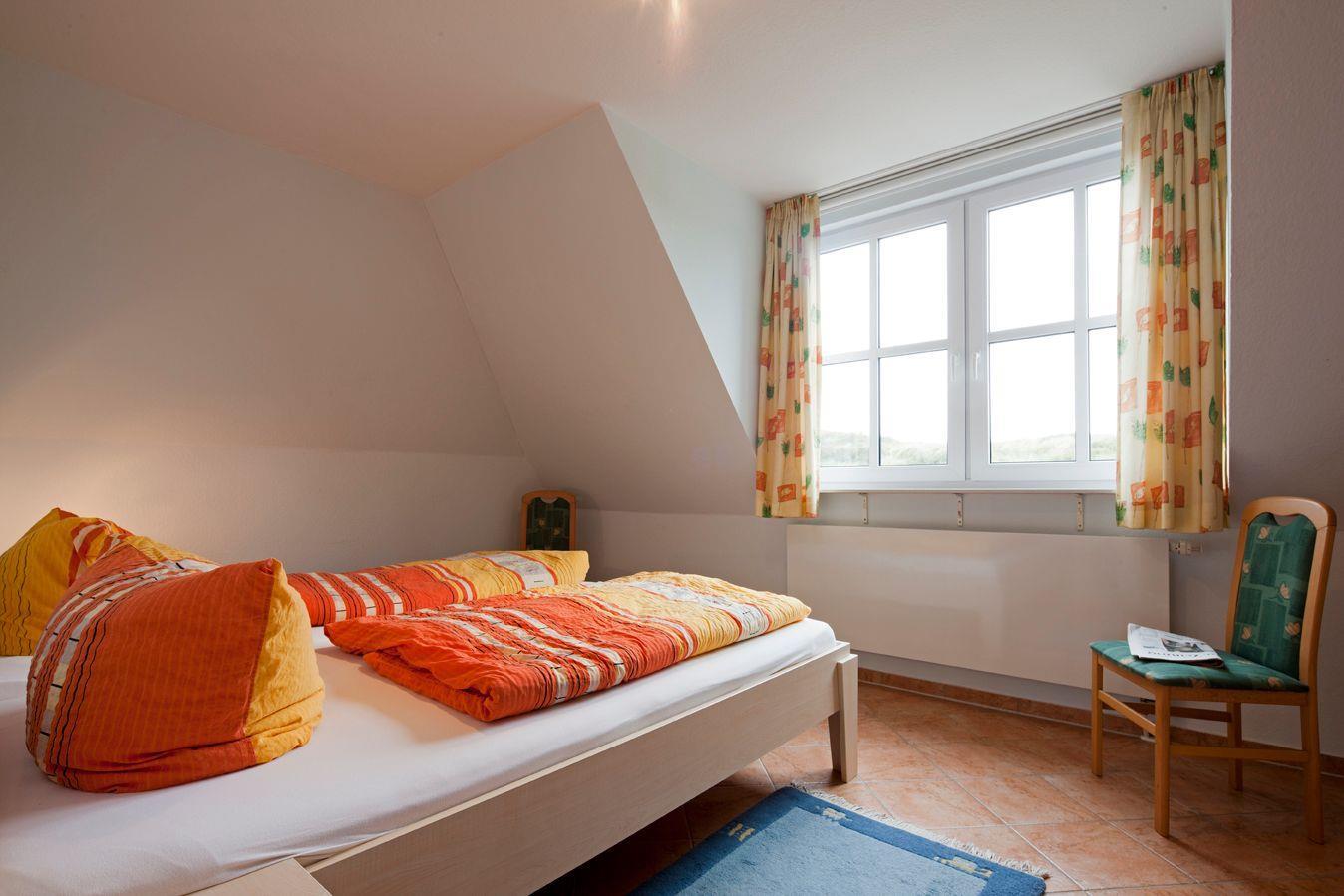 Das Appartement im 1. OG verfügt über ein separates Schlafzimmer mit Doppelbett, ein separates Schlafzimmer mit zwei Einzelbetten, Wohnraum mit Küchenzeile, Balkon, Diele, Dusche/WC und Kabel-TV. Kein Parkplatz!