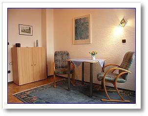 Das Single-Appartement in der 1. Etage verfügt über einen Wohn-Schlafraum (Schrankbett 140*200) mit Pantry-Küche und Kabel-TV (kein Telefon). Dusche/WC befinden sich außerhalb des Appartements auf halber Treppe, ist jedoch zur alleinigen Nutzung. NICHTRAUCHERWOHNUNG!!!