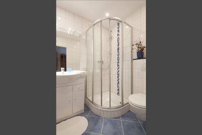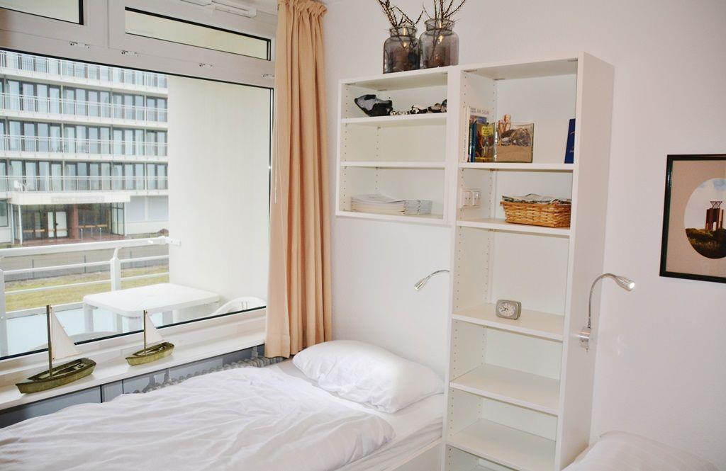 Das Appartement 4 in der 1. Etage verfügt über ein separates Schlafzimmer mit zwei Einzelbetten, Wohnraum mit Küchennische (2-Plattenherd, Spülmaschine, Mikrowelle), Diele, Dusche/WC und TV. Der Balkon hat seitliche Seesicht. Die Wohnung befindet sich im Haus Kaiserstraße 17. WLAN.