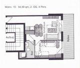 Das 35qm große Appartement in zentraler Lage befindet sich im 2. OG. Es verfügt über ein separates Schlafzimmer mit Einzelbett sowie Schrankbett (Einzelbett), Wohn-/Schlafraum mit Schlafsofa, Küchenzeile und Badezimmer mit Dusche/ WC. Vom Wohnraum haben Sie Zugang zu einem Balkon. WLAN. NICHTRAUCHERWOHNUNG.