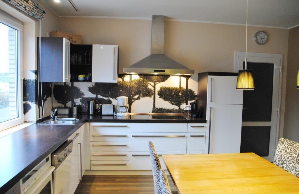 Die Küche ist mit einem weiteren Essbereich und mit vielen Utensilien (u.a. Induktionsherd, extra Getränkekühlschrank, Gefrierschrank, Nespressomaschine, Multifunktionsküchenmaschine vergleichbar mit Thermomix und vielem mehr) ausgestattet und lässt keine Wünsche offen. Geschirr beispielsweise ist in doppelter Ausführung vorhanden.