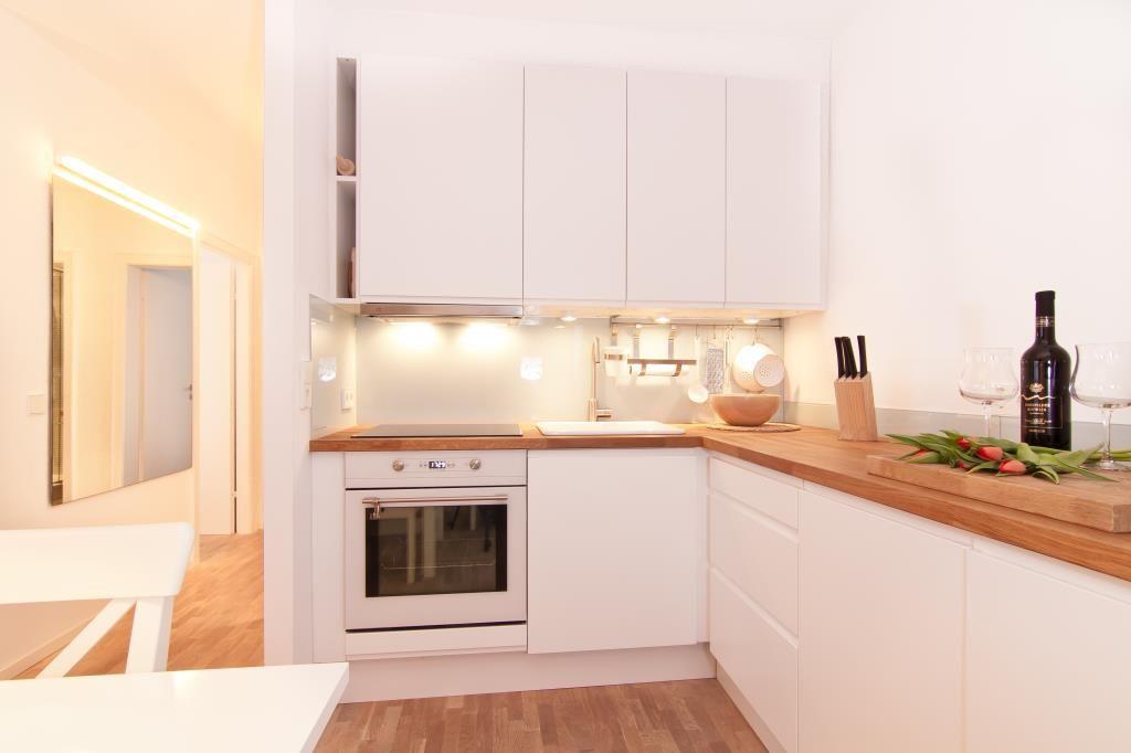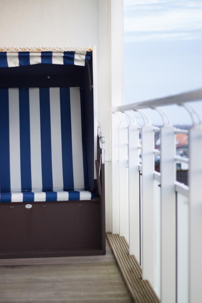 Das Appartement Nr. 126 in der 5. Etage verfügt über ein separates Schlafzimmer mit Doppelbett (Boxspringbett), eines mit zwei Einzelbetten, Wohnraum mit Küchenzeile (4-Plattenherd, Spülmaschine, Backofen), Essecke, Diele, Dusche/WC und Kabel-TV. Der Balkon hat seitliche Seesicht und einen Blick über die Stadt. NICHTRAUCHERWOHNUNG !!! WLAN. Ein wohnungseigener Parkplatz (Nr. 33) ist am Haus (Kaiserstraße 18).