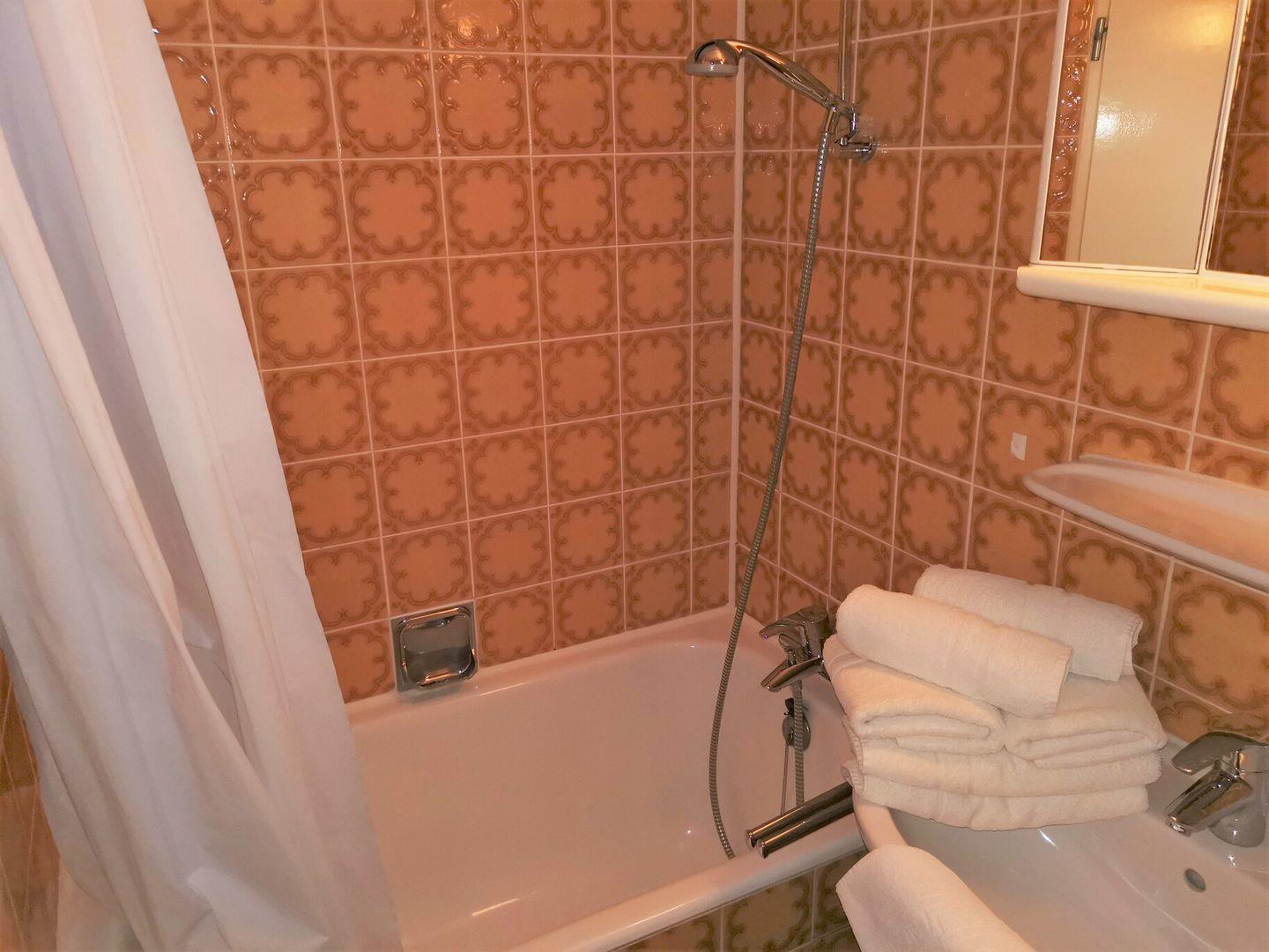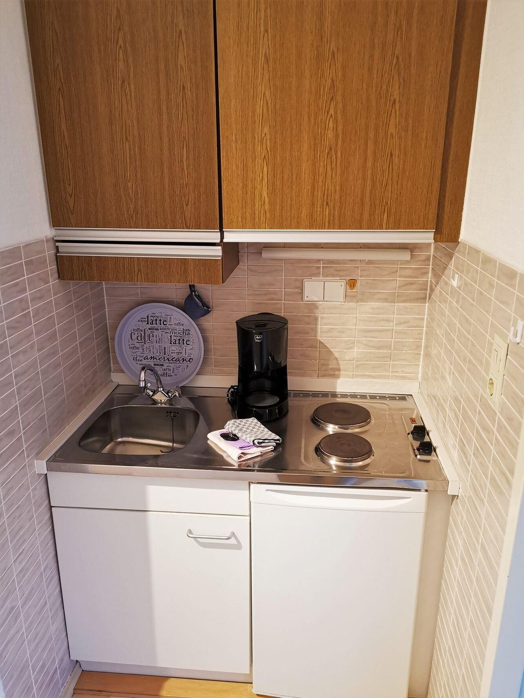 Das Apartment bietet eine separate Schlafzimmmer, ein Badezimmer mit Badewanne sowie eine kleine, praktische Küche. (Filter-Kaffeemaschine)