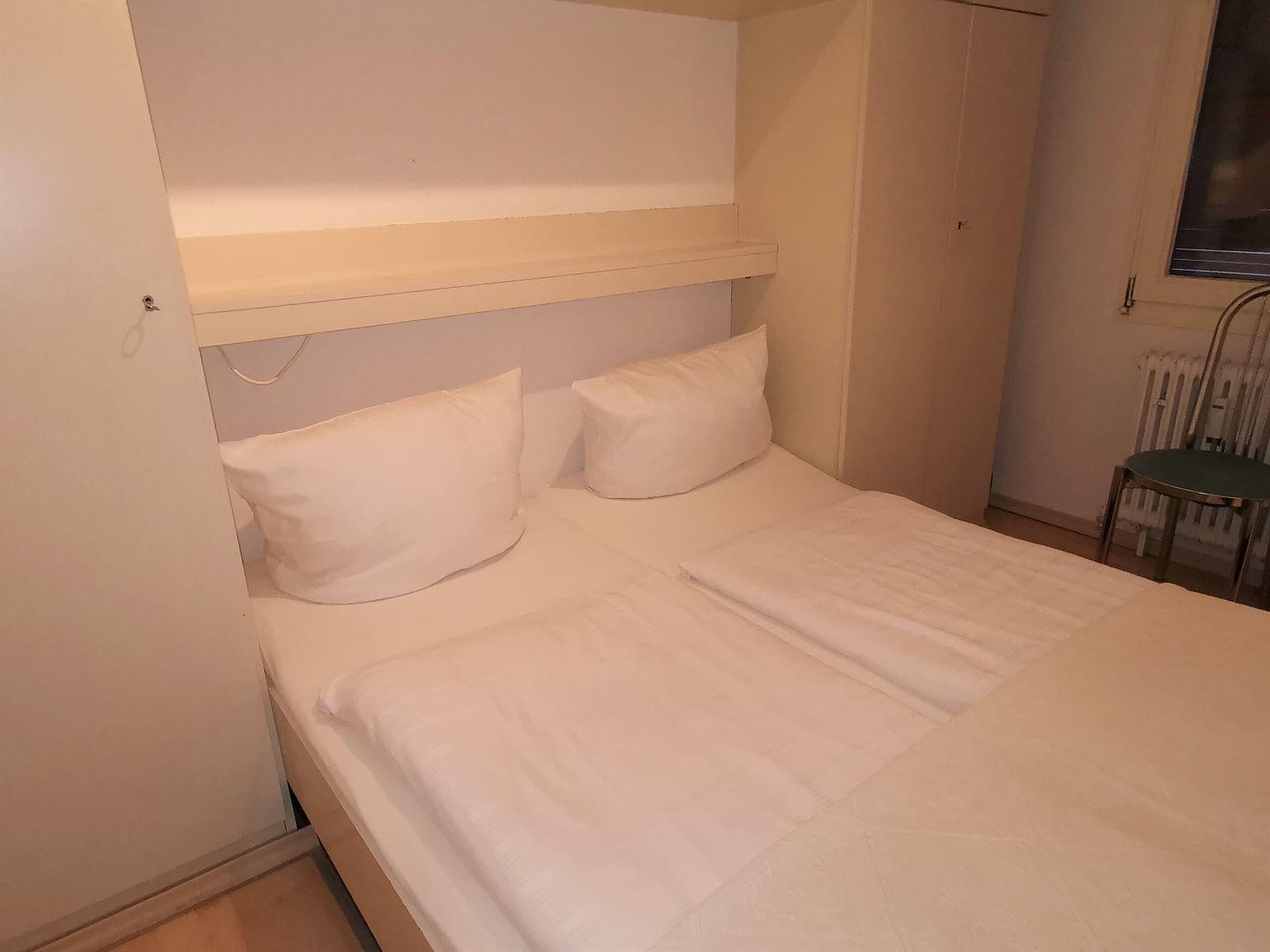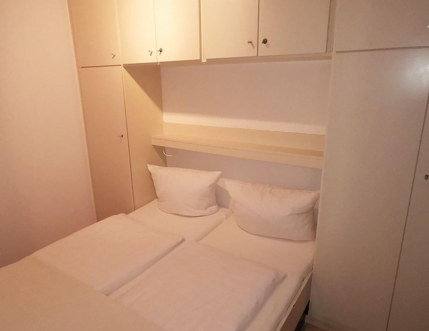 Das 2-Raum-Appartement liegt im 3. Obergeschoss (Aufzug) und verfügt über ein separates Schlafzimmer mit Doppelbett, Wohn-/Schlafraum (TV) mit Essbereich, Küchenzeile (2-Platten-EHerd, Kühlschrank, 3-Sterne-Gefrierfach) und Duschbad mit WC. Vom Wohnraum haben Sie Zugang zum Süd-West Balkon mit seitlichem Meerblick. NICHTRAUCHERWOHNUNG!