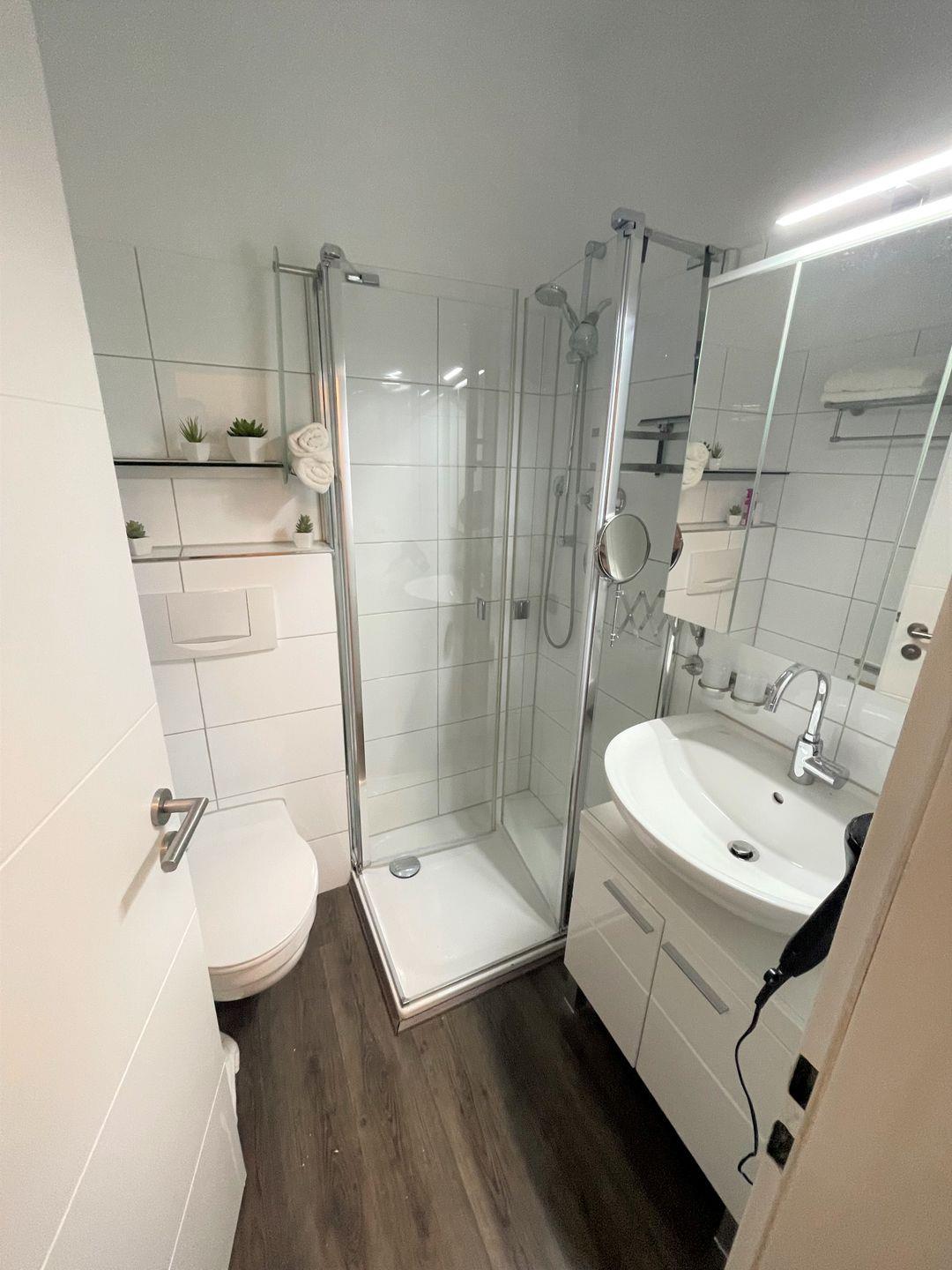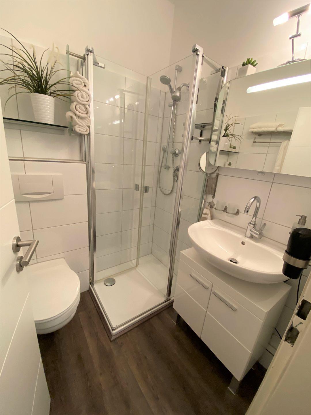Das 3-Raum-Appartement im 1. OG befindet sich in beliebter Citylage direkt in der Fußgängerzone (im Haus befindet sich im EG ein Friseur, Modegeschäft und eine Kneipe). Die Wohnung, ca. 52 m² groß und modern ausgestattet. Sie verfügt über einen großzügigen Wohnraum mit Esstisch für 4 Personen, eine moderne Küche (Geschirrspülmaschine, 2-Platten-Ceranfeld, Backofen, Mikrowelle) und ein kleines Bad mit WC/Dusche. Ein innenliegender, abgetrennter Schlafraum ist mit einem komfortablen Boxspringbett ausgestattet (160 x 200 cm), wobei das Fenster zum Wohnraum zu öffnen ist. Ein weiteres Schlafzimmer bietet Platz für zwei weitere Personen im Etagenbett. Der Wohnraum bietet direkten Zugang zum sonnigen Westbalkon. Nichtraucherwohnung! Hunde erlaubt, jedoch keine Katzen. Im Keller steht Ihnen gegen Entgelt eine Waschmaschine und ein Trockner zur Verfügung.