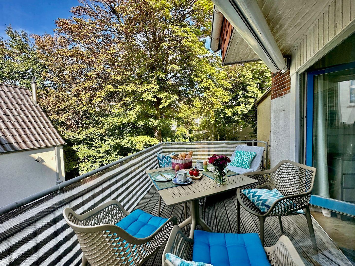 großzügigen Balkon der Ferienwohnung eingenommen werden. Insgesamt bietet die Ferienwohnung Platz für 3 Personen (4. Person auf Anfrage) auf einer Wohnfläche von 35 qm. Ein offener WLAN-Zugang wird zur Verfügung gestellt.