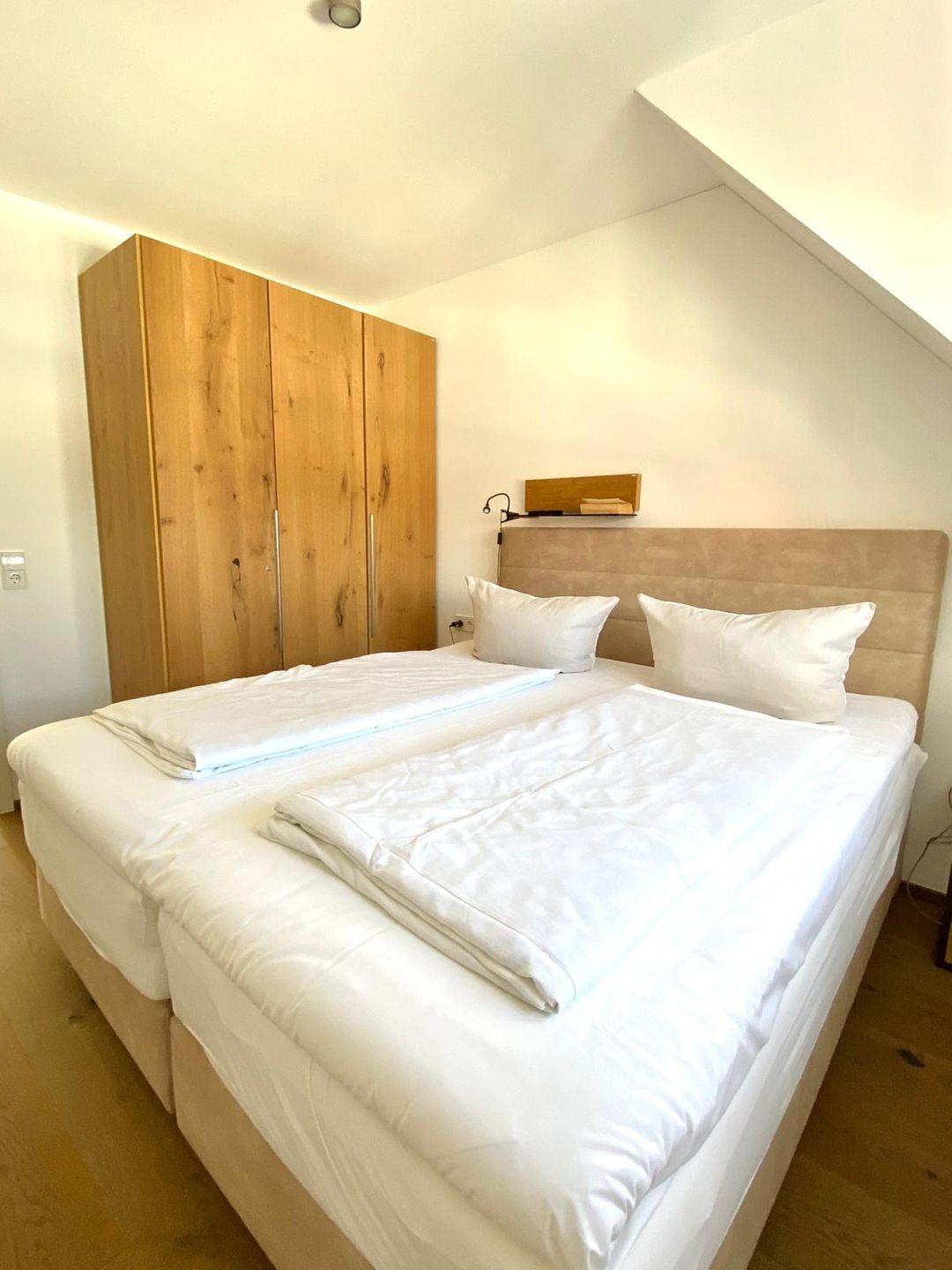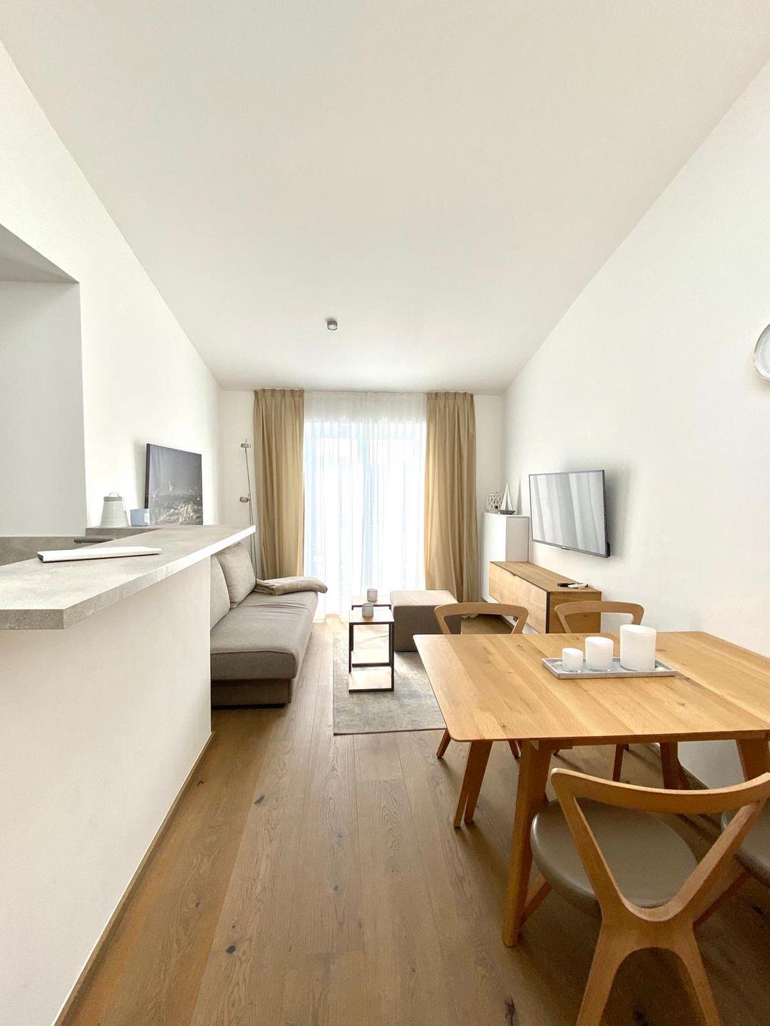 Das Neubau-Appartement in der 2. Etage verfügt über einen Wohnraum mit Essbereich (TV) und Küchenzeile (Spülmaschine, Backofen), ein Schlafzimmer mit Doppelbett sowie ein Badezimmer mit Dusche/WC. Vom Wohnraum haben Sie Zugang zu einem Balkon. Kostenloses WLAN vorhanden.