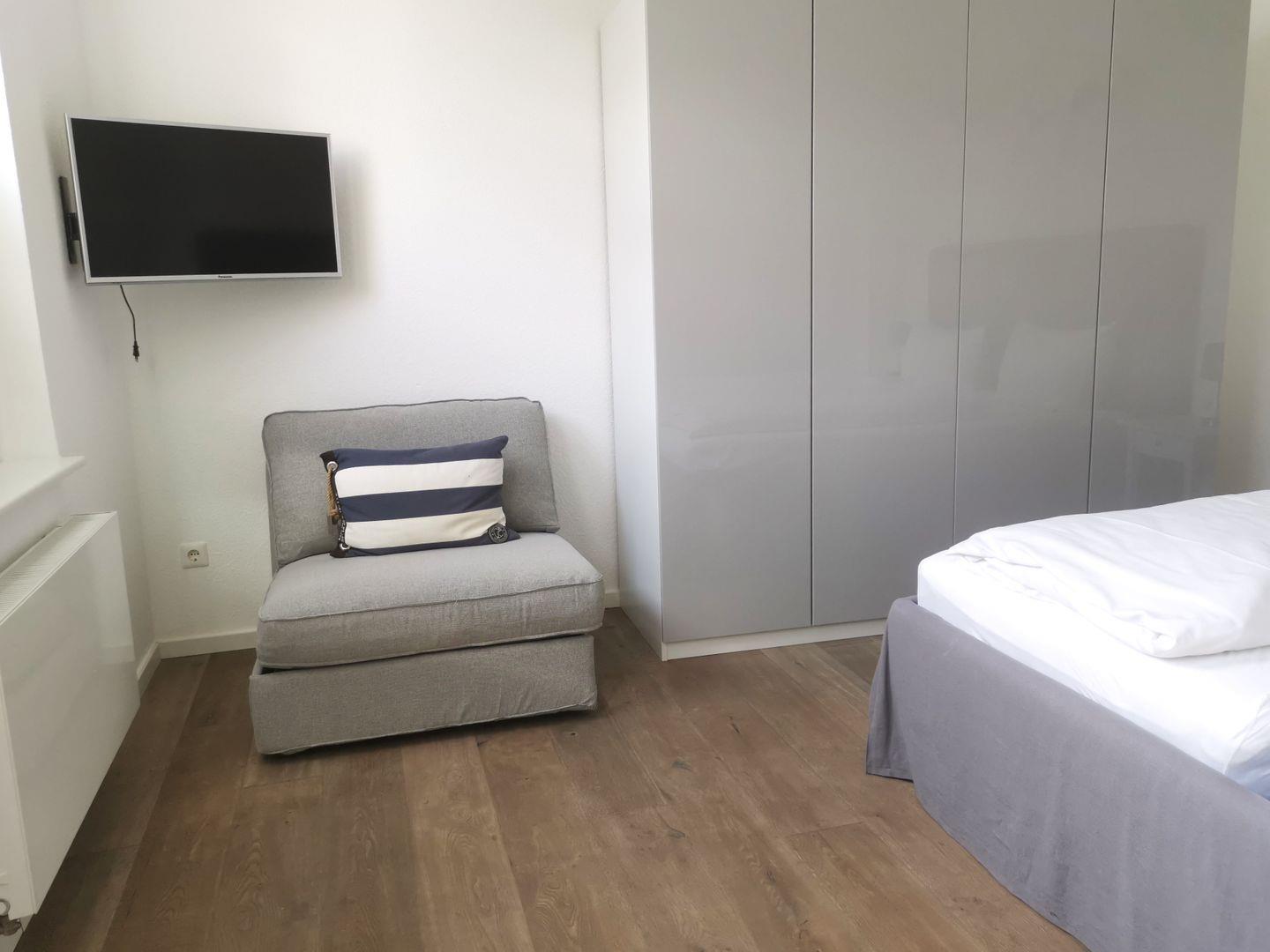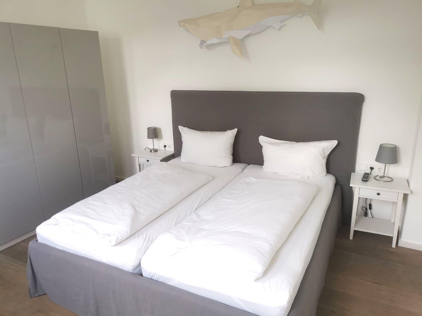 Die 3-Raum-Ferienwohnung im Erdgeschoss verfügt über ein separates Schlafzimmer mit Doppelbett sowie Schlafsessel (1 Person), ein separates Schlafzimmer mit Doppelbett (nicht von beiden Seiten zugänglich - an der Wand stehend!), großzügigen Wohnraum (TV) mit Küchenzeile (Spülmaschine) und Essbereich sowie Badezimmer mit Dusche/ WC (Waschmaschine/ Trockner vorhanden). Von der Küche gelangen Sie auf die Terrasse mit angrenzendem kleinen Garten. Gäste-WC vorhanden. WLAN. NICHTRAUCHERWOHNUNG!