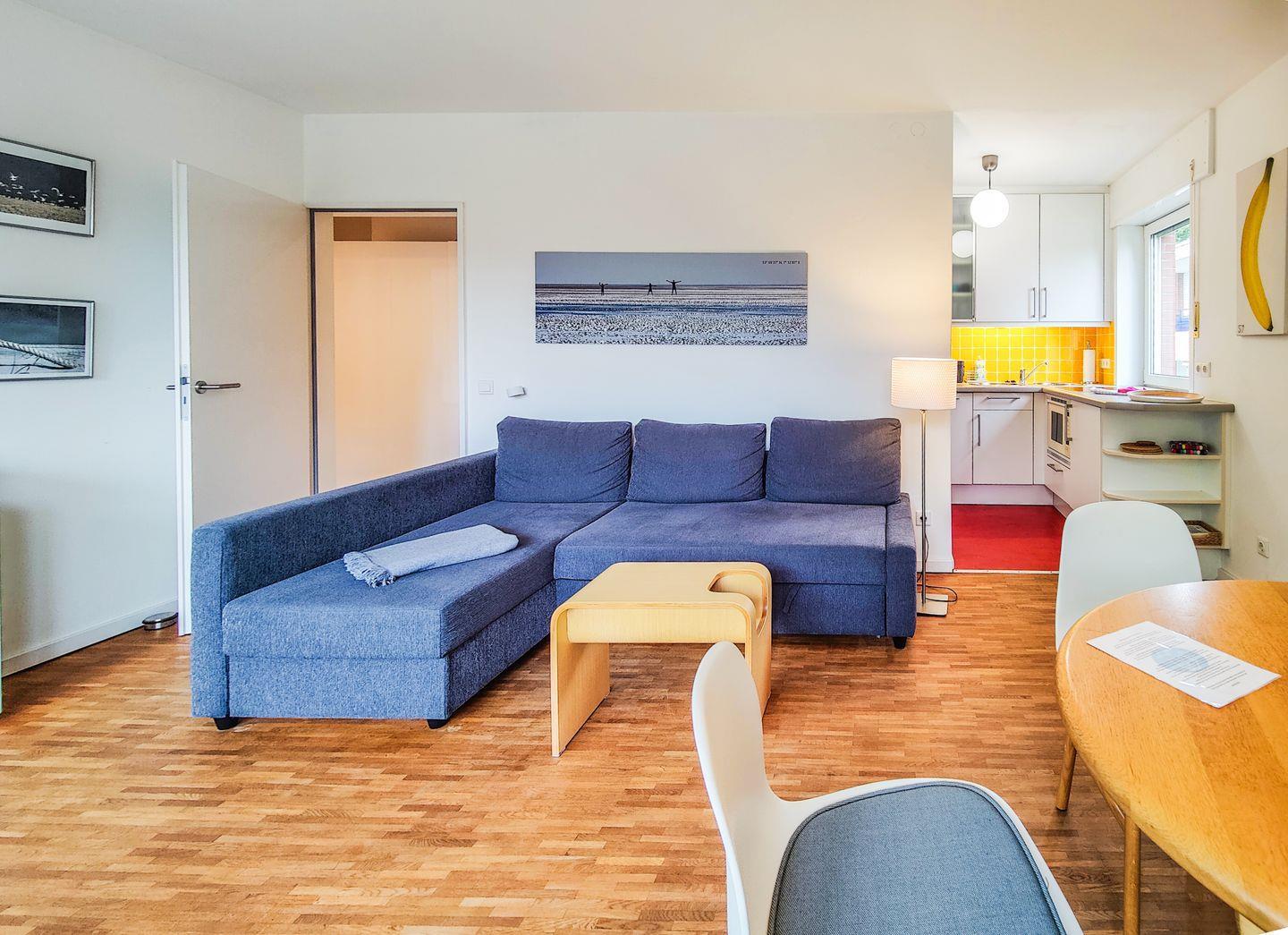Die Ferienwohnung "Berlin" auf Norderney bietet einen möblierten Süd-Balkon mit Markise, sowie ein lichtdurchflutetes Wohn-Esszimmer. In der komplett ausgestatteten Küche können Sie bequem Ihre Lieblingsmahlzeiten zubereiten. Ein Schlafzimmer mit zwei Doppelbett und ein Wannenbad komplettieren die Ferienunterkunft. Sie ist ideal für zwei Personen ausgestattet, eine dritte Person kann auf dem Schlafsofa untergebracht werden.