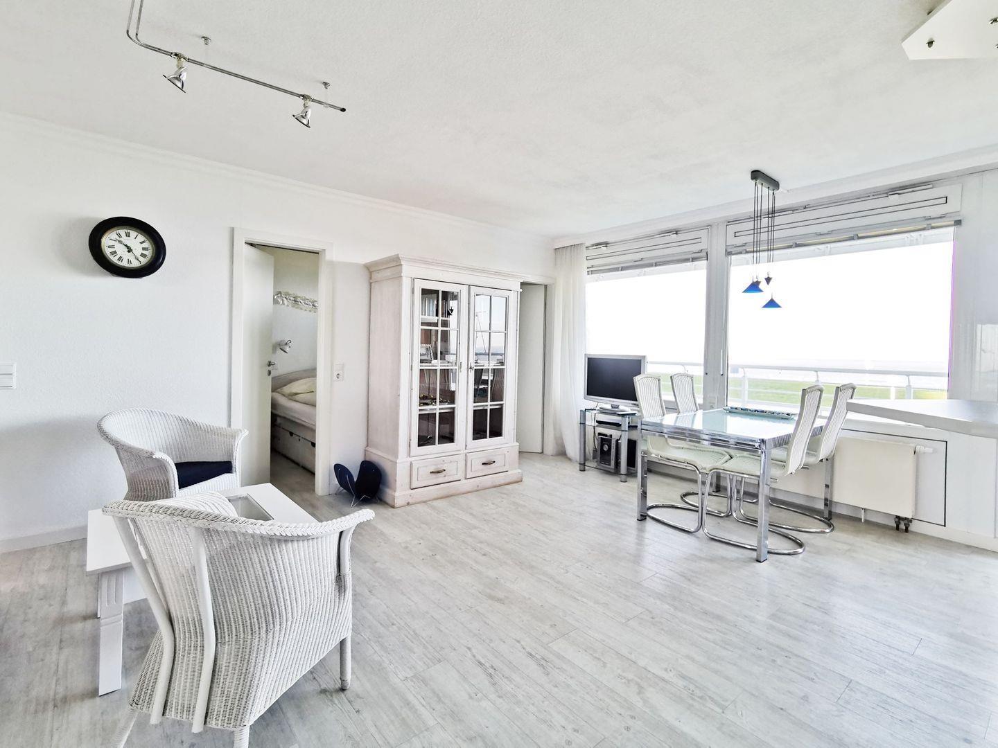 Diese gemütliche Ferienwohnung besticht durch ihren großzügigen, offenen Wohn-, Ess- und Kochbereich mit einem herrlichen Panoramablick über die Strandpromenade, die Kaiserwiese und die Nordseebrandung. Von hier aus können Sie entspannte Stunden mit faszinierender Meereskulisse genießen.