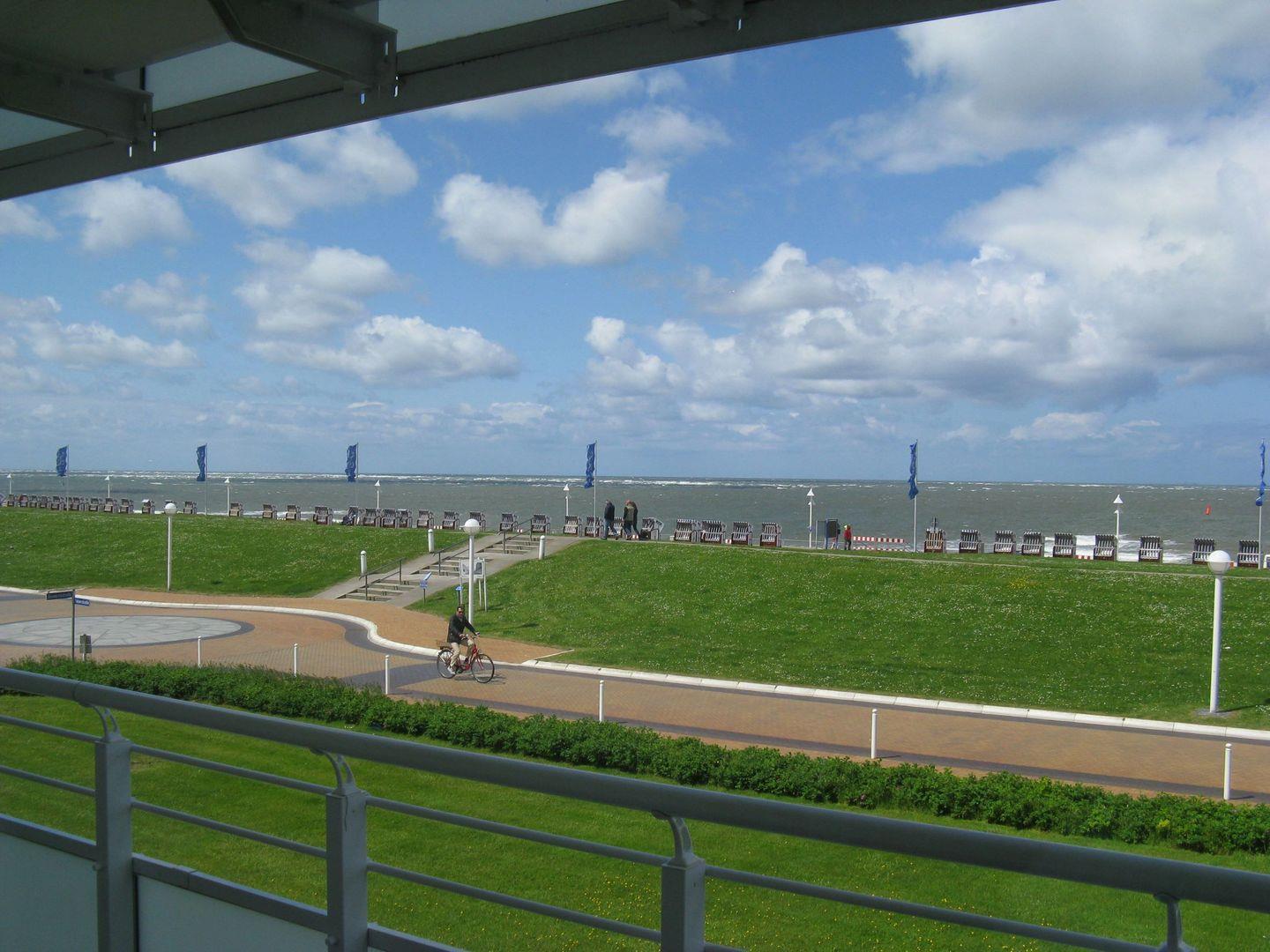 Ein besonderes Highlight der Wohnung ist der großzügige Balkon (ca. 9,30 m x 1,50 m) mit direktem Meerblick, der viel Platz zum Verweilen und Genießen bietet. Hier können Sie Ihre Mahlzeiten mit Blick auf die Nordsee einnehmen oder in einem gemütlichen Strandkorb die herrliche Nachmittagssonne genießen.