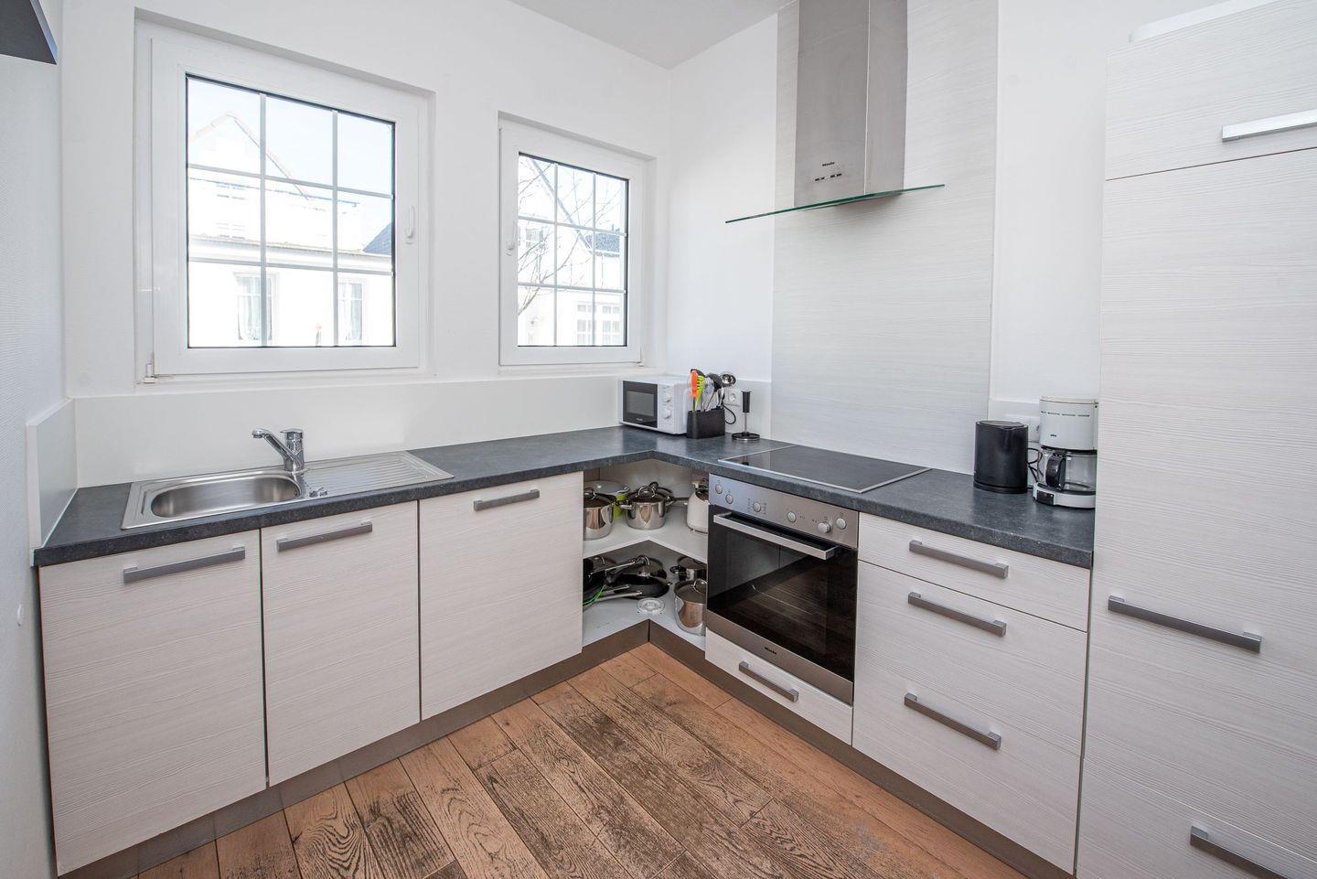 Die Einbau-Küche ist komplett für den täglichen Gebrauch eingerichtet.