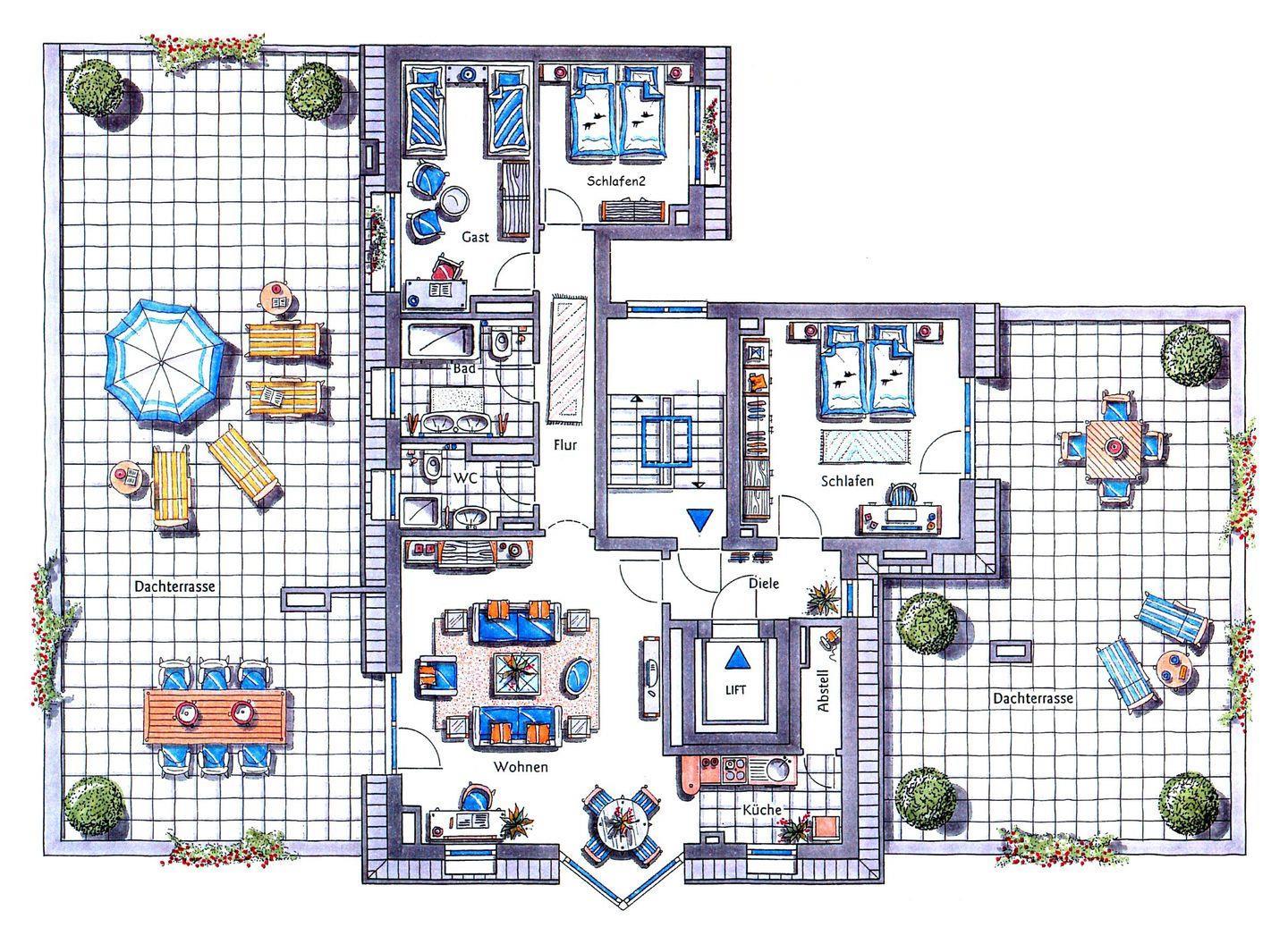 Die moderne Penthouse-Wohnung mit 120qm bietet mit einem großzügigen Wohnraum und drei separaten Schlafzimmern ein komfortables Zuhause für bis zu sechs Personen. Erreichbar ist das Apartment bequem über eine eigene Liftstation, welcher Sie direkt bis vor Ihre Wohnungstür fährt.