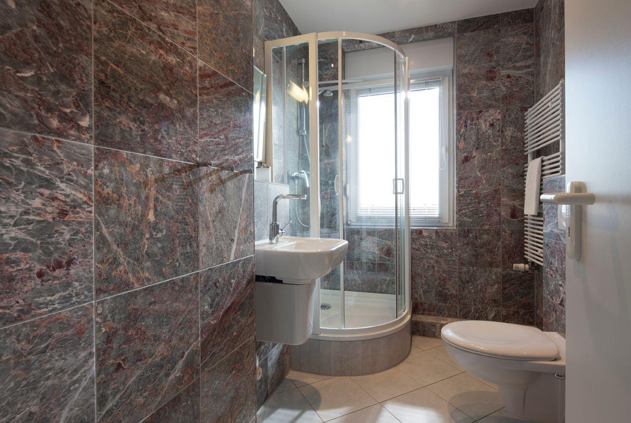 Die Wohnung ist mit zwei luxuriösen Badezimmer mit edlen Marmorfliesen versehen und verfügen über Fußbodenheizung. Während das eine Badezimmer mit einer großzügigen Dusche ausgestattet ist, lädt das zweite mit einer Badewanne zu entspannten Wellnessmomenten ein. Beide Bäder bieten zudem ein WC.