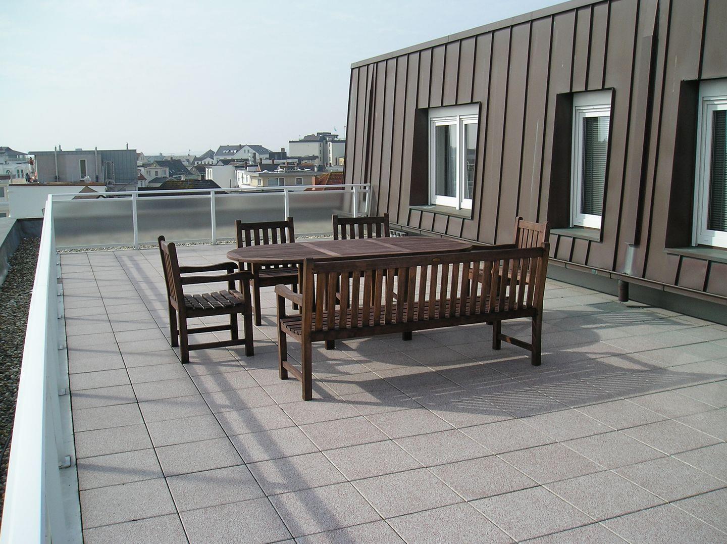 Zwei weitläufige Dachterrassen ermöglichen einen beeindruckenden Rundblick über die gesamte Insel, wobei eine der Terrassen sogar einen direkten Meerblick bietet – perfekt, um den Tag mit einer entspannten Auszeit unter freiem Himmel zu genießen.