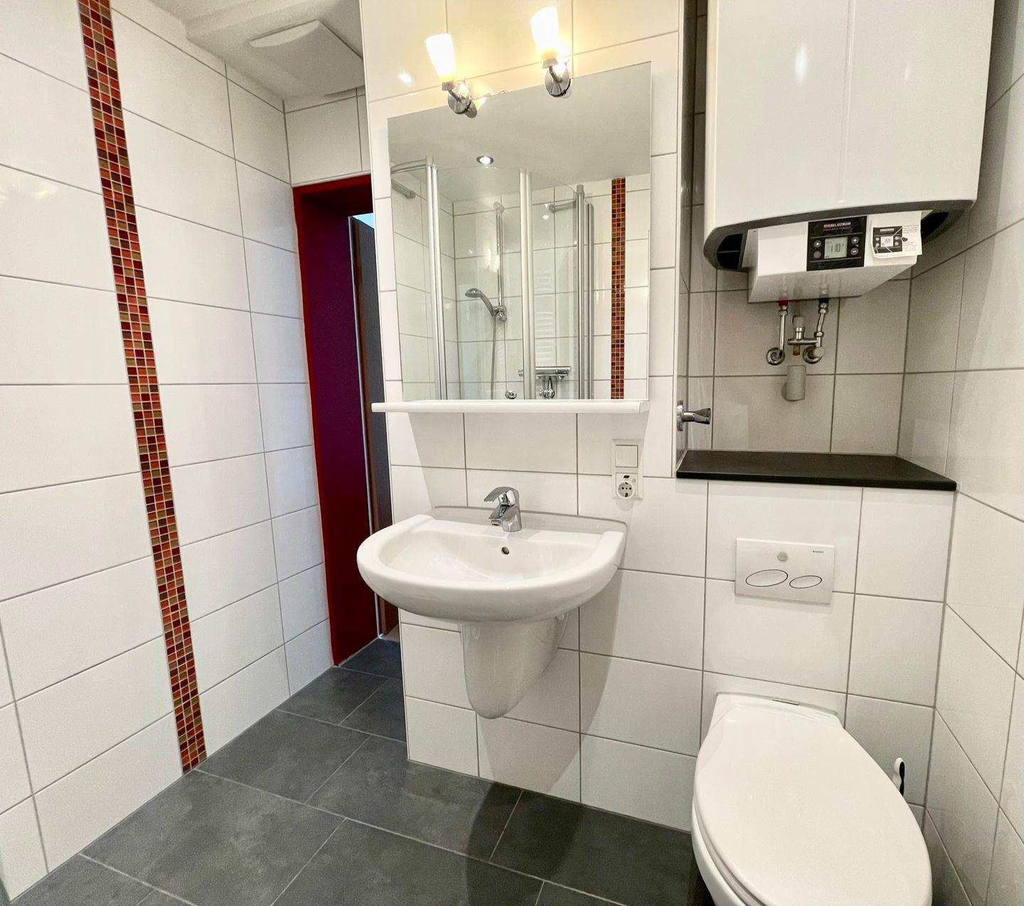 Das Bad mit Dusche/WC ist für den alltäglichen Gebrauch geeignet.