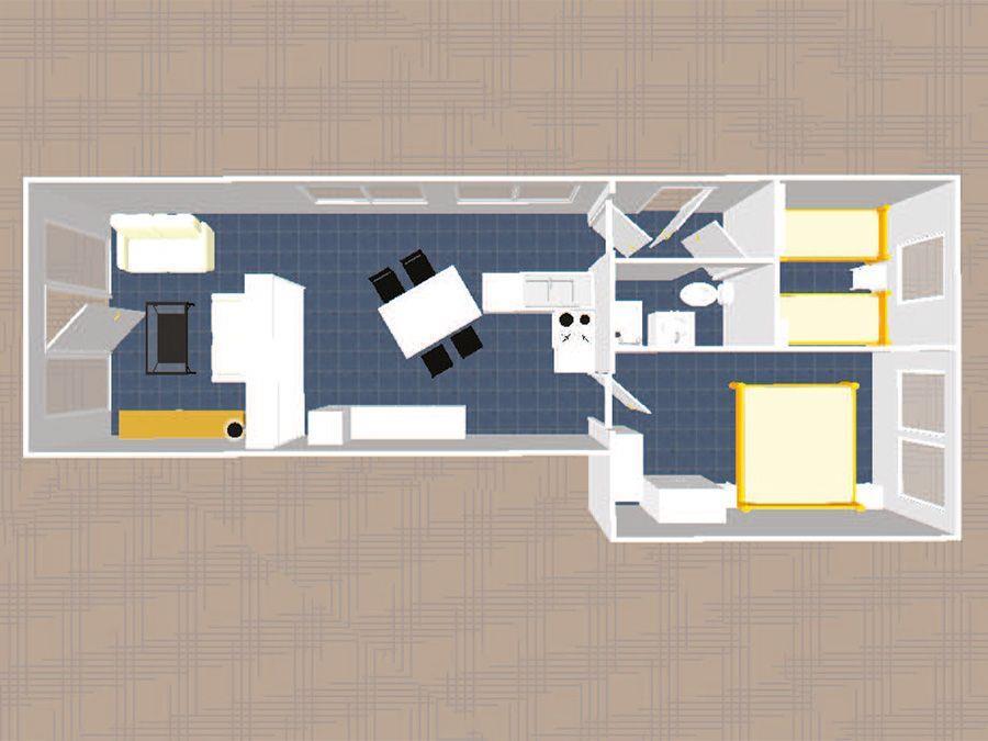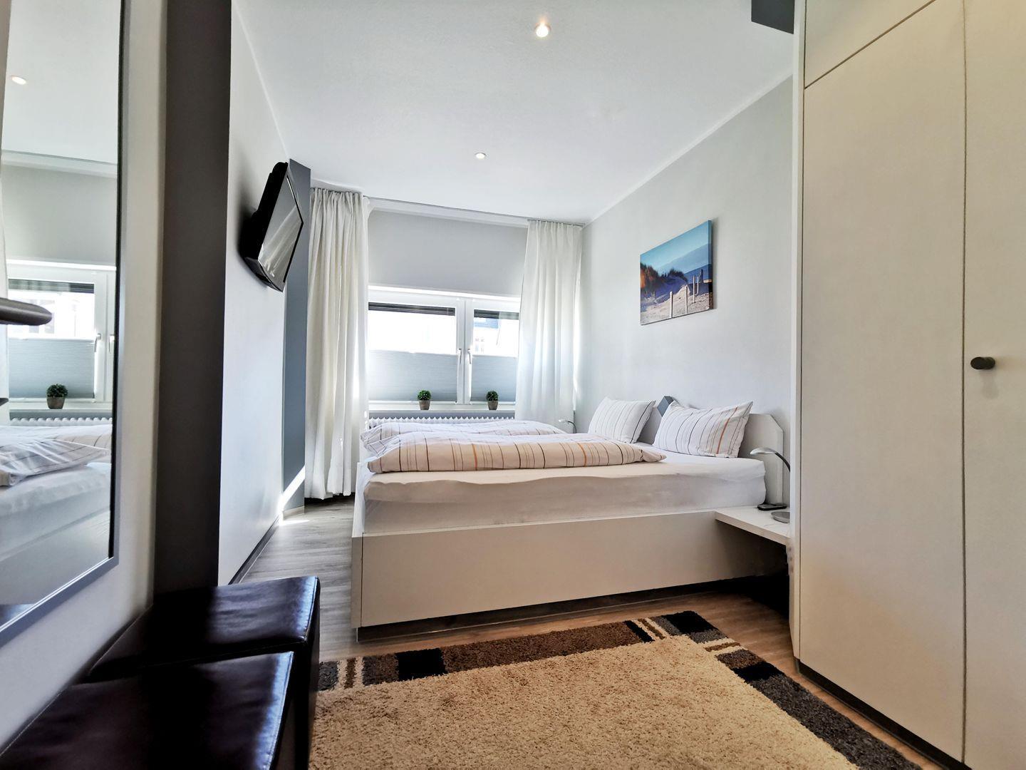 Der größere Schlafraum ist mit einem Doppelbett ausgestattet. Das zweite Schlafzimmer beherbergt zwei Einzelbetten.