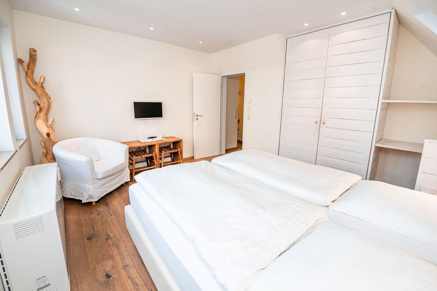 LCD-Flachbildschirme in Wohn- und Schlafzimmer, eine DVD/CD-Anlage und ein CD/MP3-Player runden das Wohlfühlangebot ab.