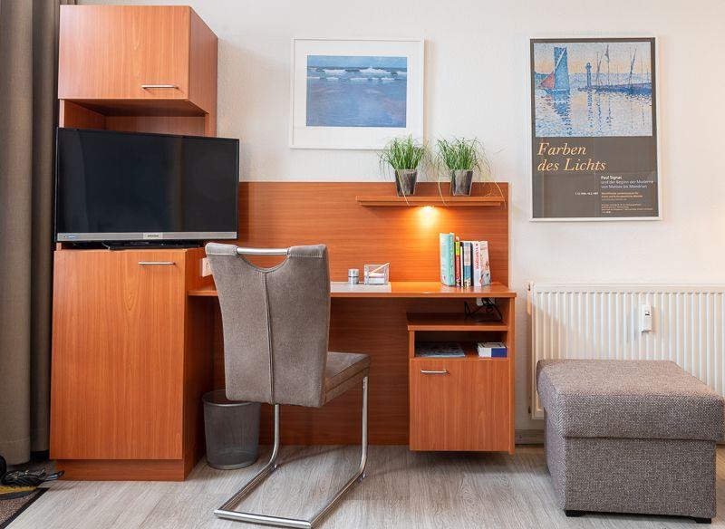 Ein besonderes Highlight ist der großzügige Balkon mit Gartenmöbeln, der vom Wohnraum aus zugänglich ist und einen schönen Blick über die ruhig gelegene Luisen- und Wilhelmstraße bietet. Für Ihren Komfort steht Ihnen in der gesamten Wohnung kostenfreies WLAN zur Verfügung.