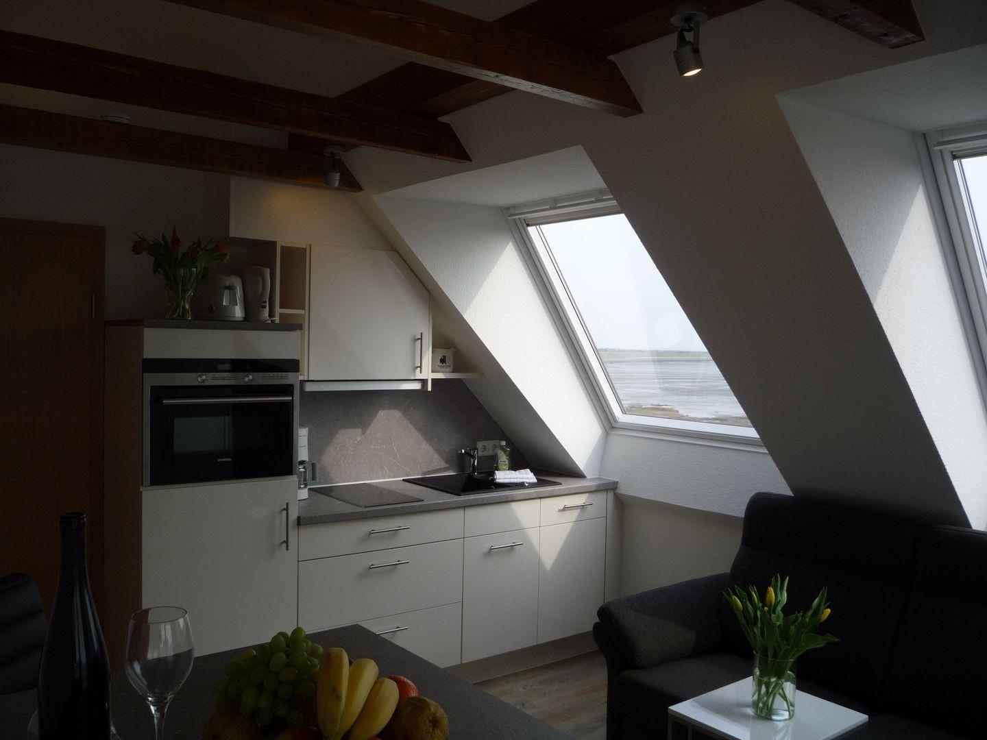 Zur Ausstattung gehört eine Pantryküche mit einem 2- Plattenherd, Mikrowelle mit Grill, Kühlschrank, Kaffeemaschine,